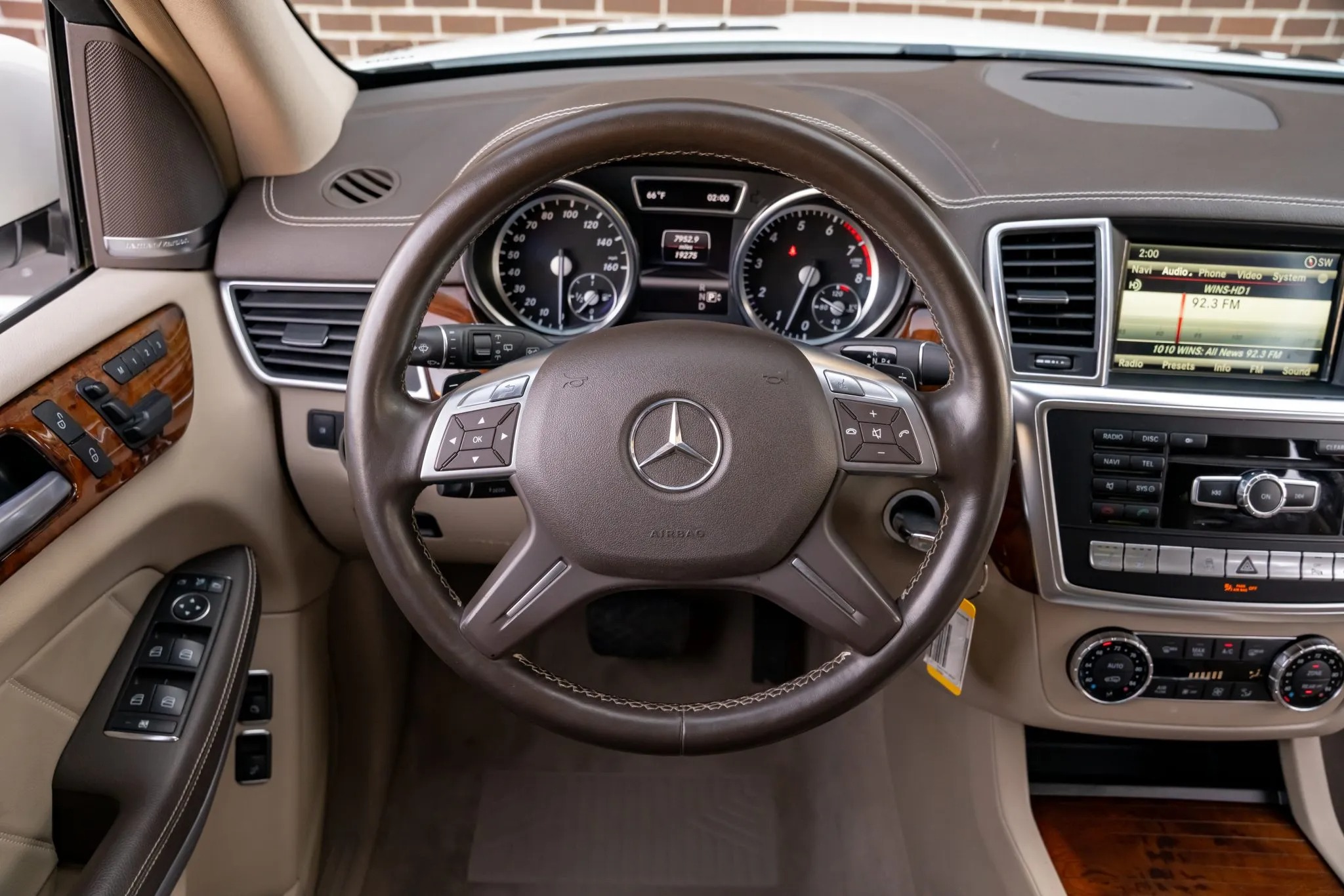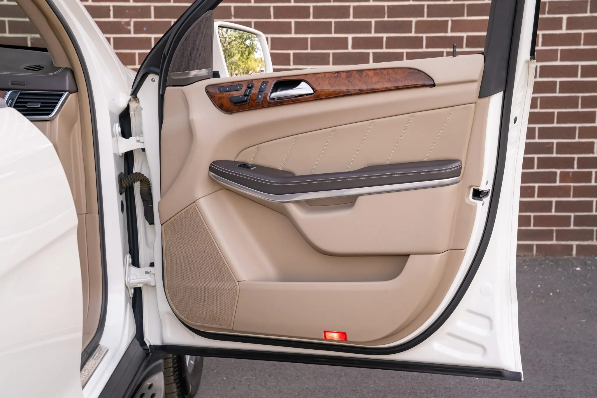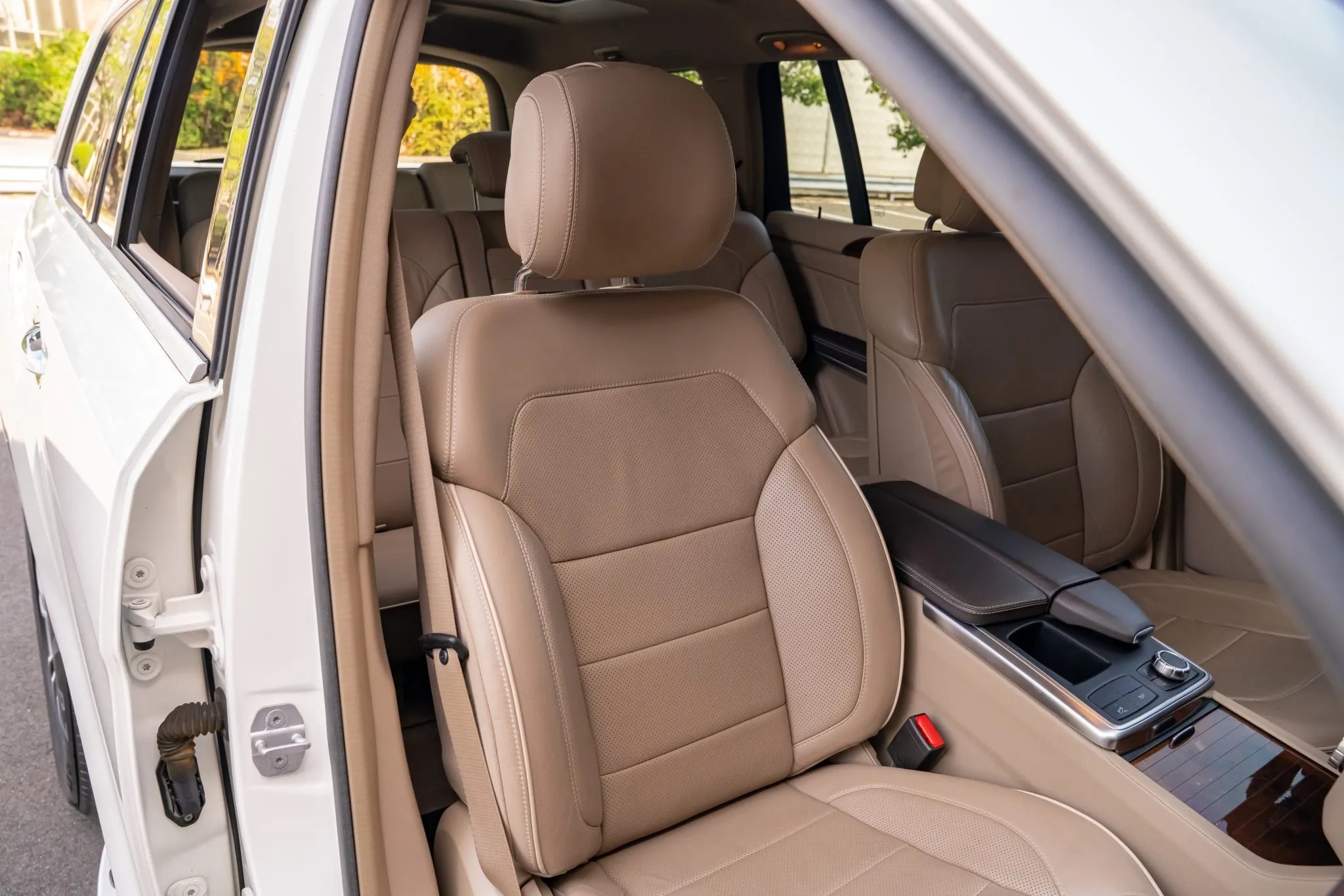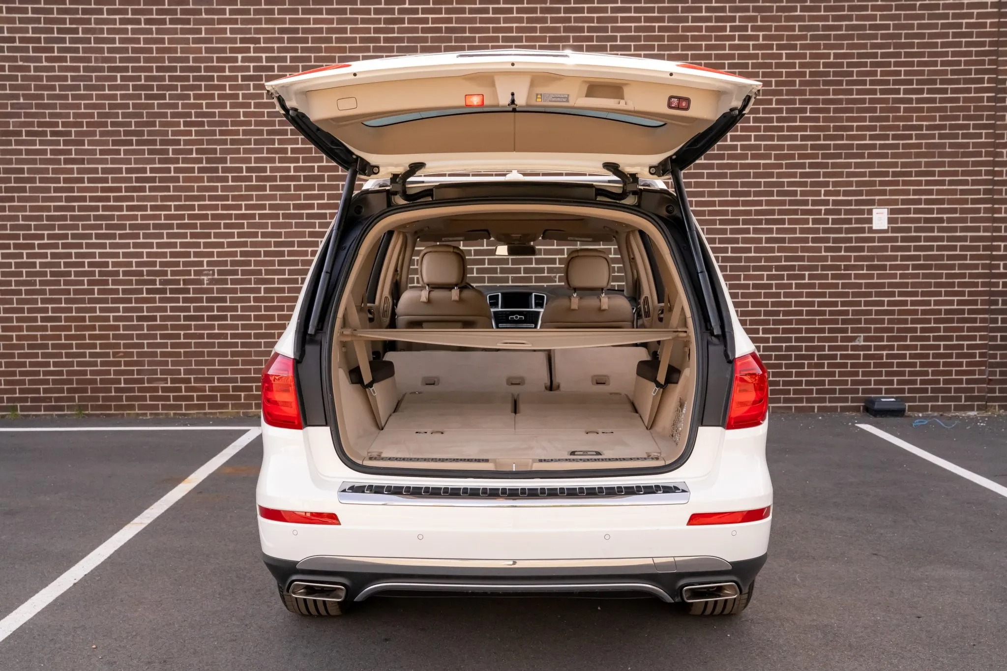 2013 Mercedes-Benz GL450 has 19k miles, is finished in Diamond White Metallic over beige leather upholstery. Power is provided by a twin-turbocharged 4.6-liter V8 linked with a seven-speed automatic transmission and a 4MATIC all-wheel-drive system. Equipment includes the Lane Tracking Package, a panoramic sunroof, bi-xenon headlights, parking sensors, a powered tailgate, 20″ 10-spoke wheels, heated and ventilated power-adjustable front seats, a heated steering wheel, heated second-row seats, third-row seating, Keyless Go, a Harman Kardon LOGIC7 surround sound system, navigation, and three-zone automatic climate control.