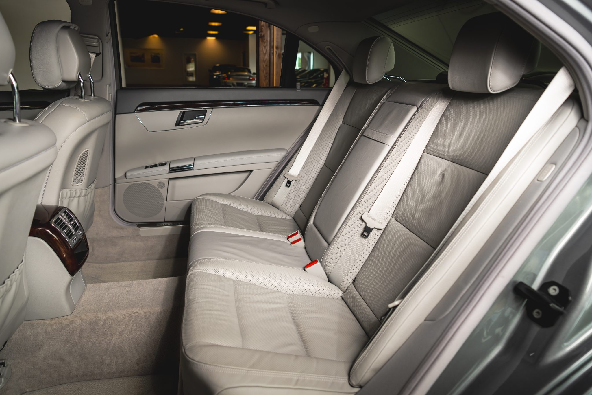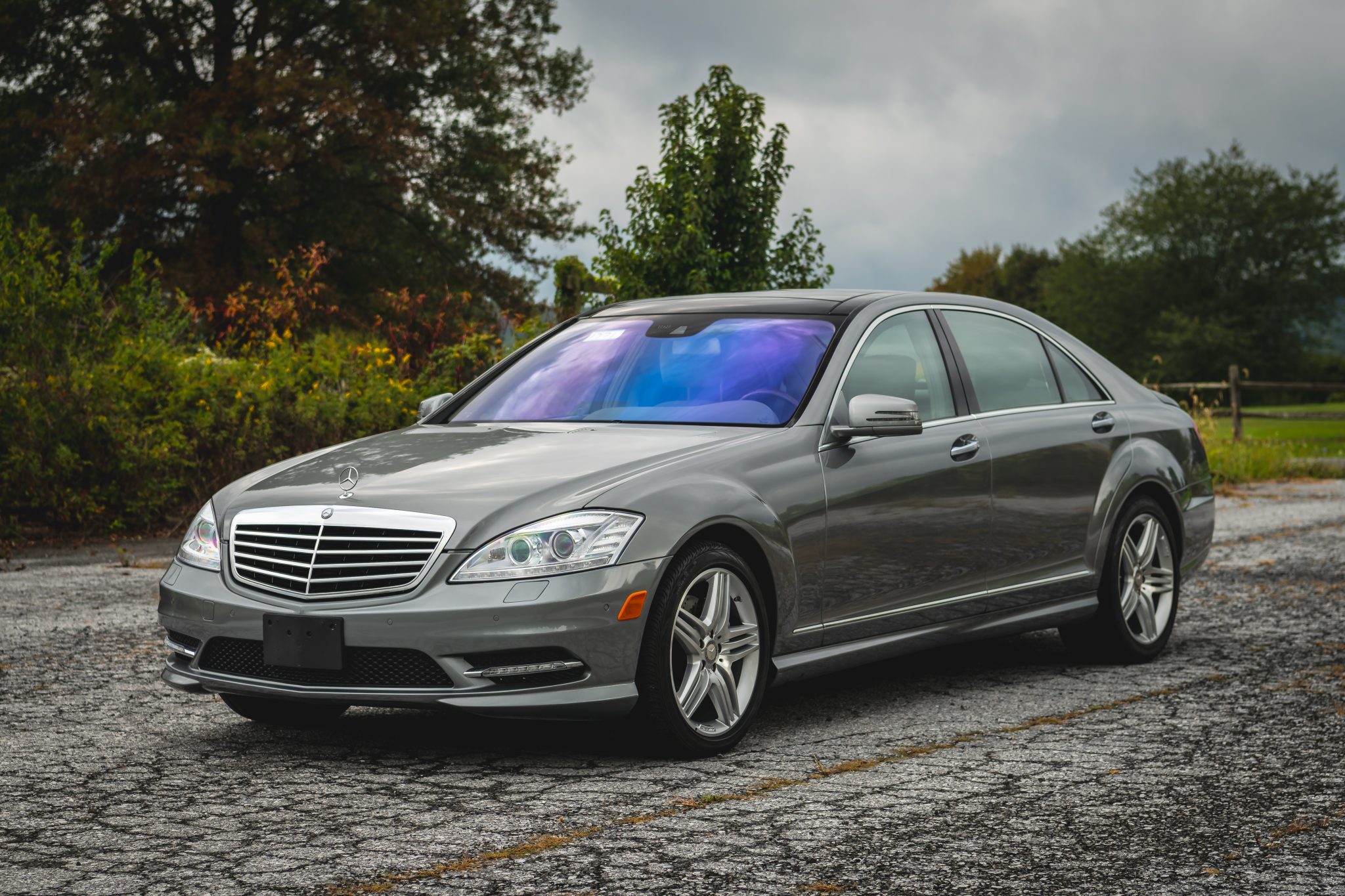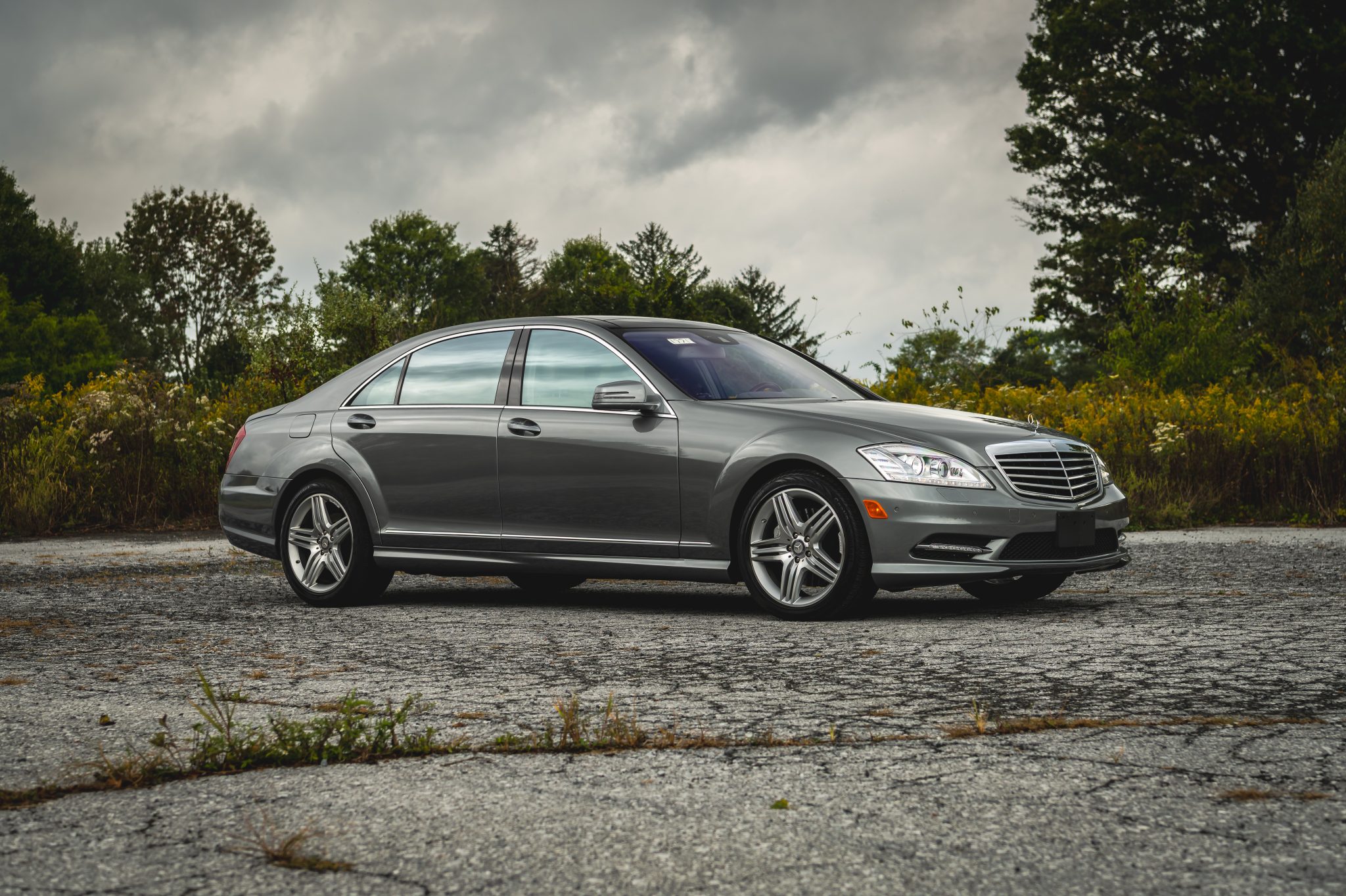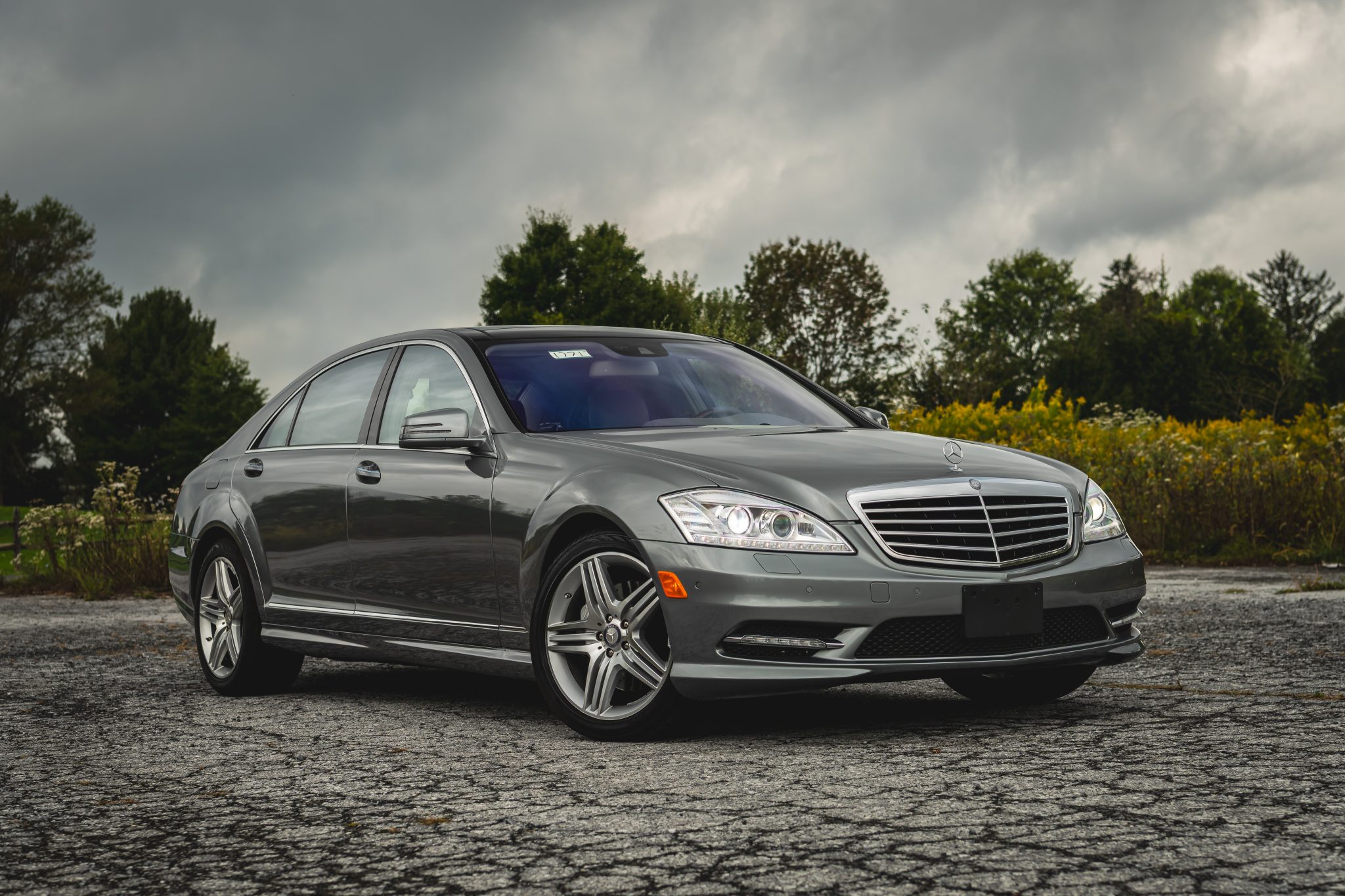 Finished in Palladium Silver Metallic over Ash and Gray leather upholstery, the car is powered by a twin-turbocharged 4.7-liter V8 paired with a seven-speed automatic transmission. It was optioned with the Premium 2 package and is equipped with 19″ AMG wheels, adaptive Airmatic suspension, bi-xenon headlights, a panoramic sunroof, Parktronic sensors, soft-close doors, Keyless-Go, a rearview camera, walnut trim, dual-zone automatic climate control, COMAND with navigation, and heated, ventilated, and massaging front seats.