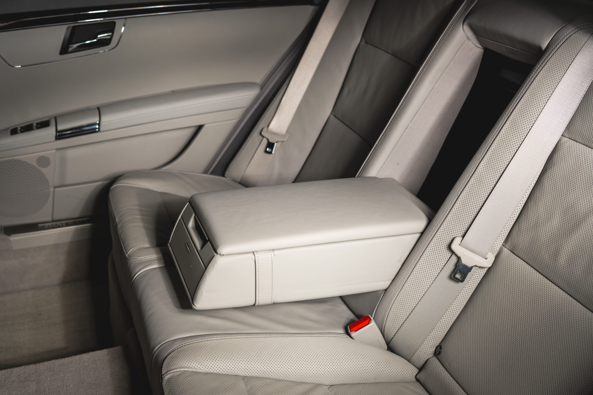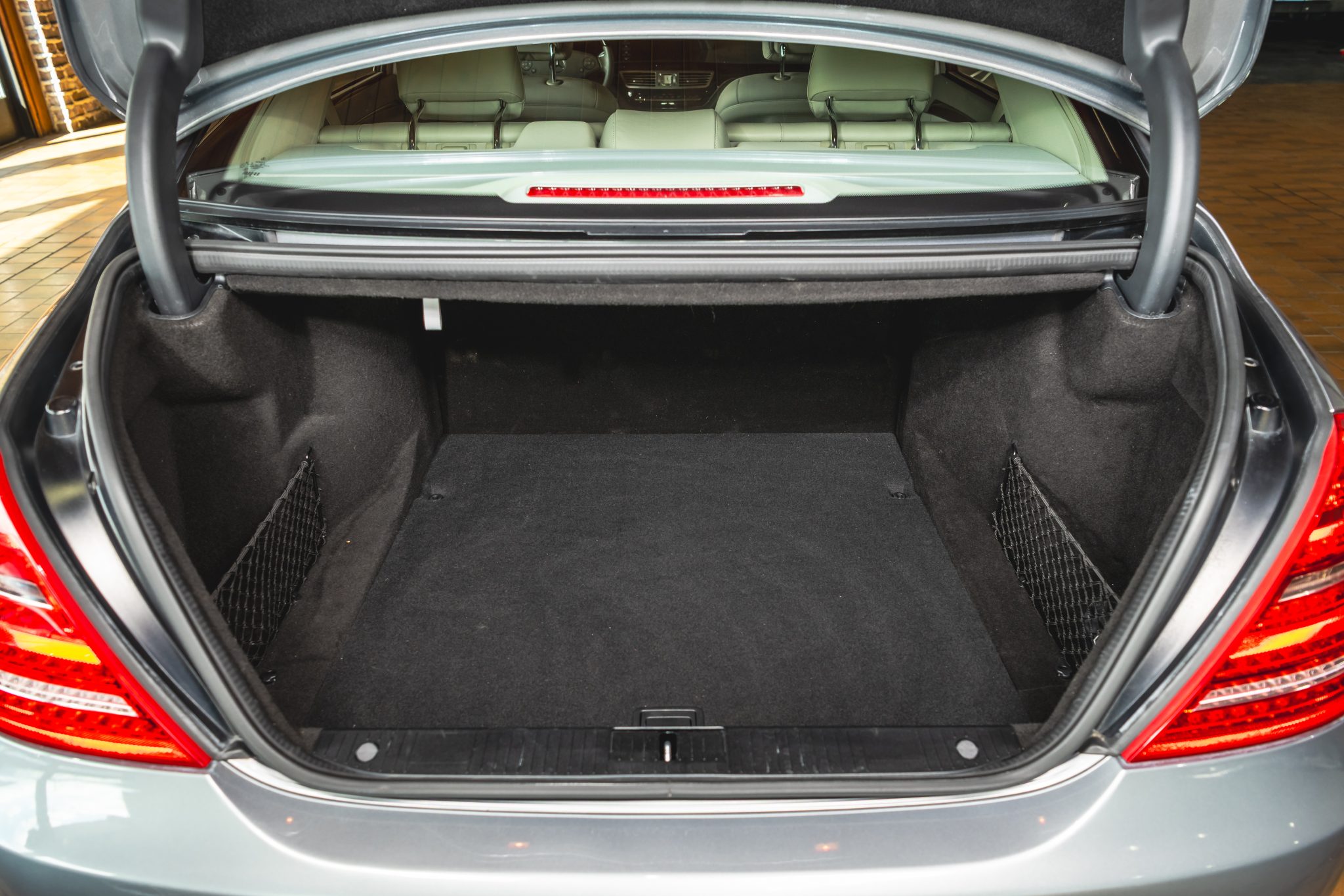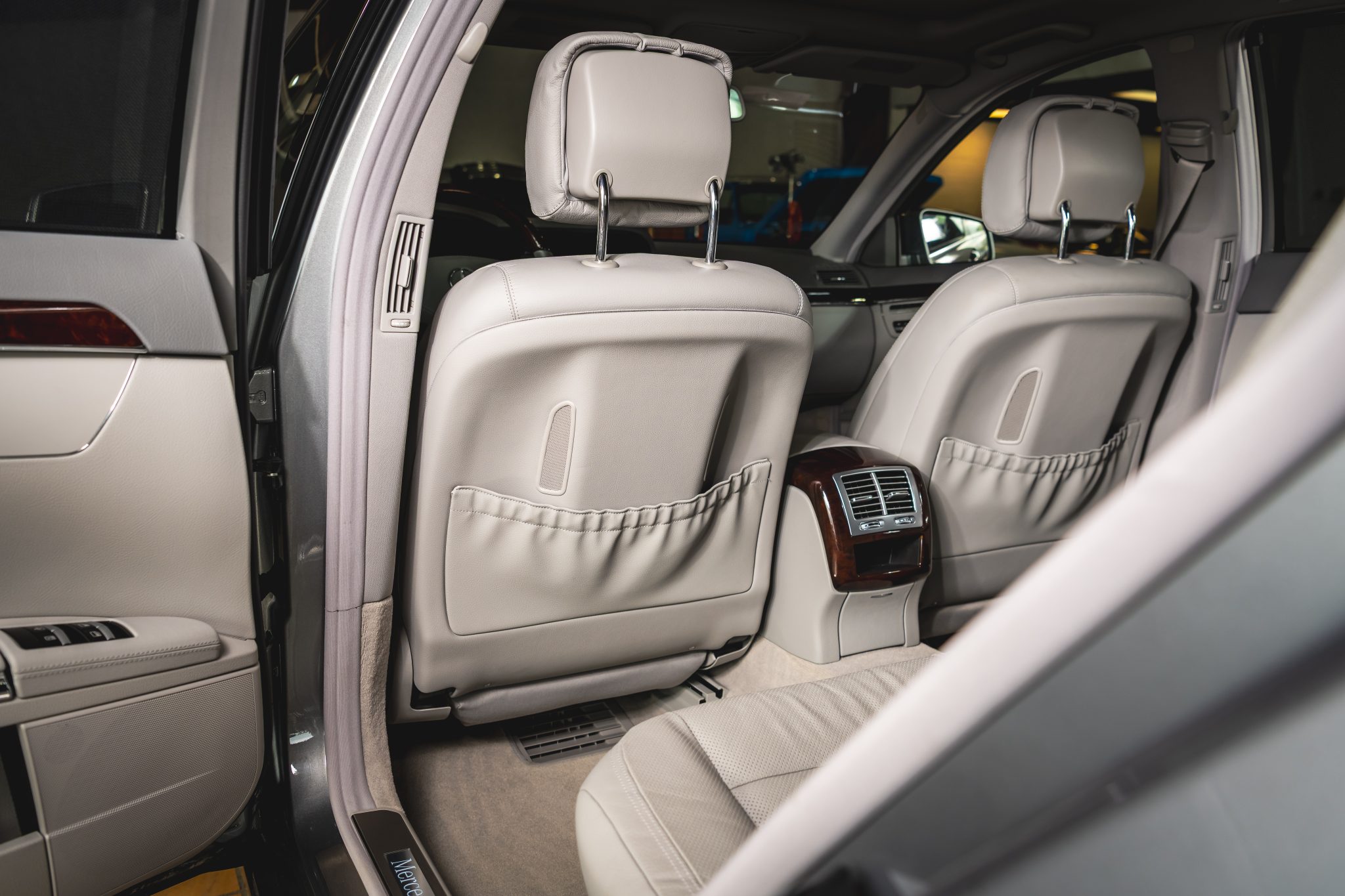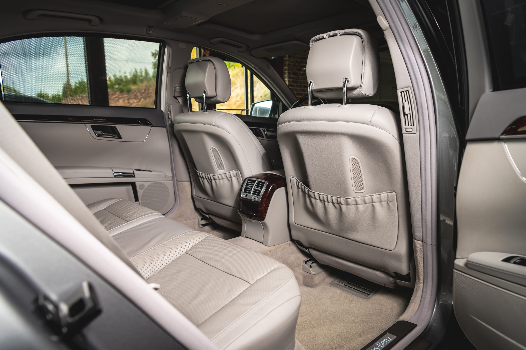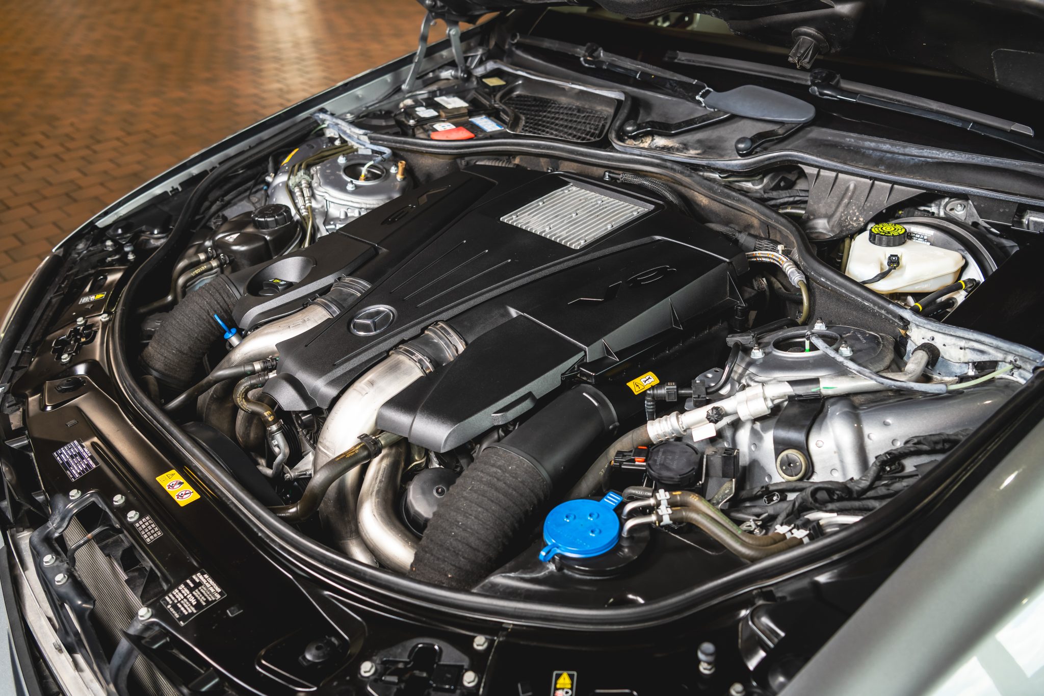 Finished in Palladium Silver Metallic over Ash and Gray leather upholstery, the car is powered by a twin-turbocharged 4.7-liter V8 paired with a seven-speed automatic transmission. It was optioned with the Premium 2 package and is equipped with 19″ AMG wheels, adaptive Airmatic suspension, bi-xenon headlights, a panoramic sunroof, Parktronic sensors, soft-close doors, Keyless-Go, a rearview camera, walnut trim, dual-zone automatic climate control, COMAND with navigation, and heated, ventilated, and massaging front seats.