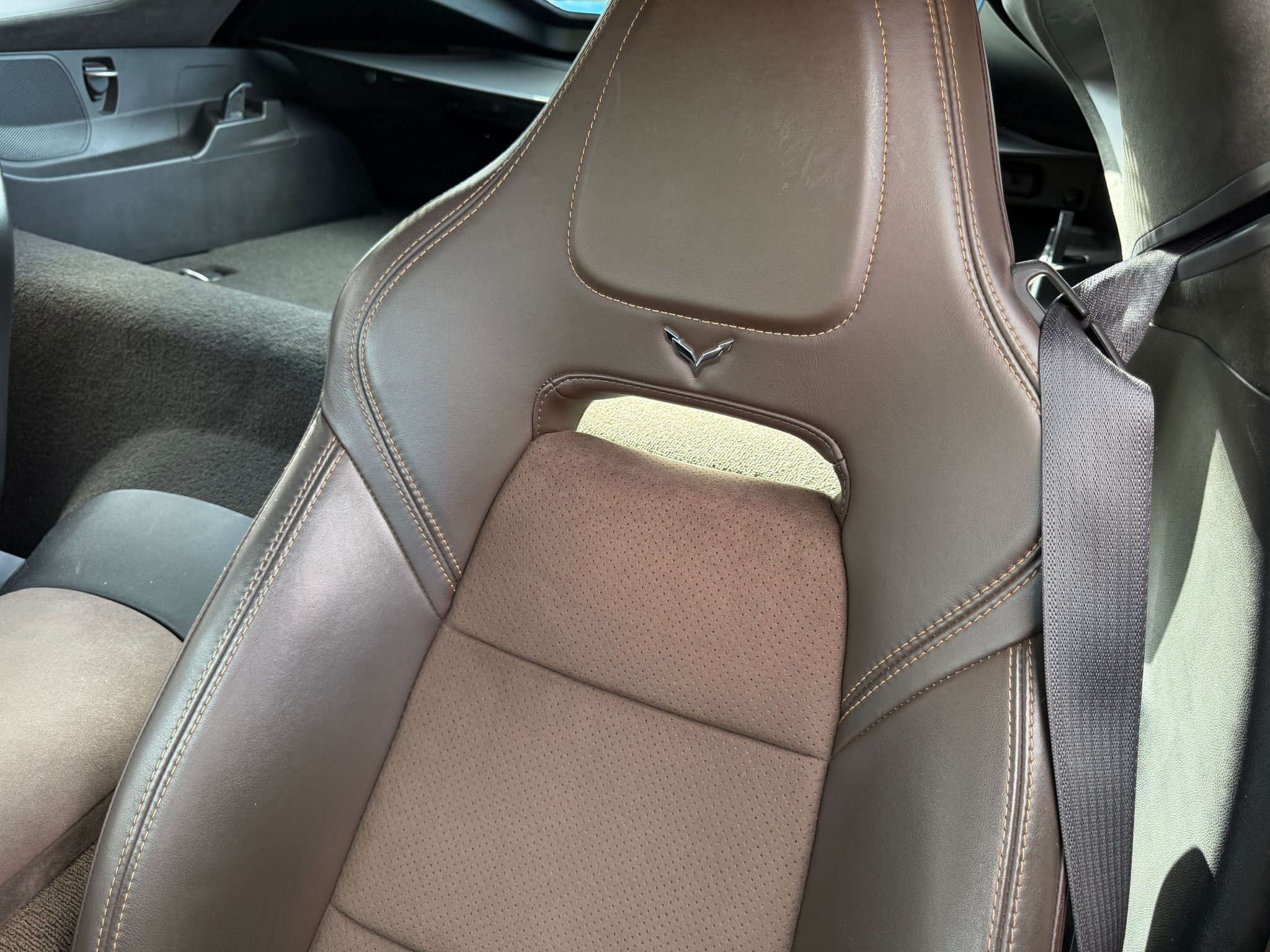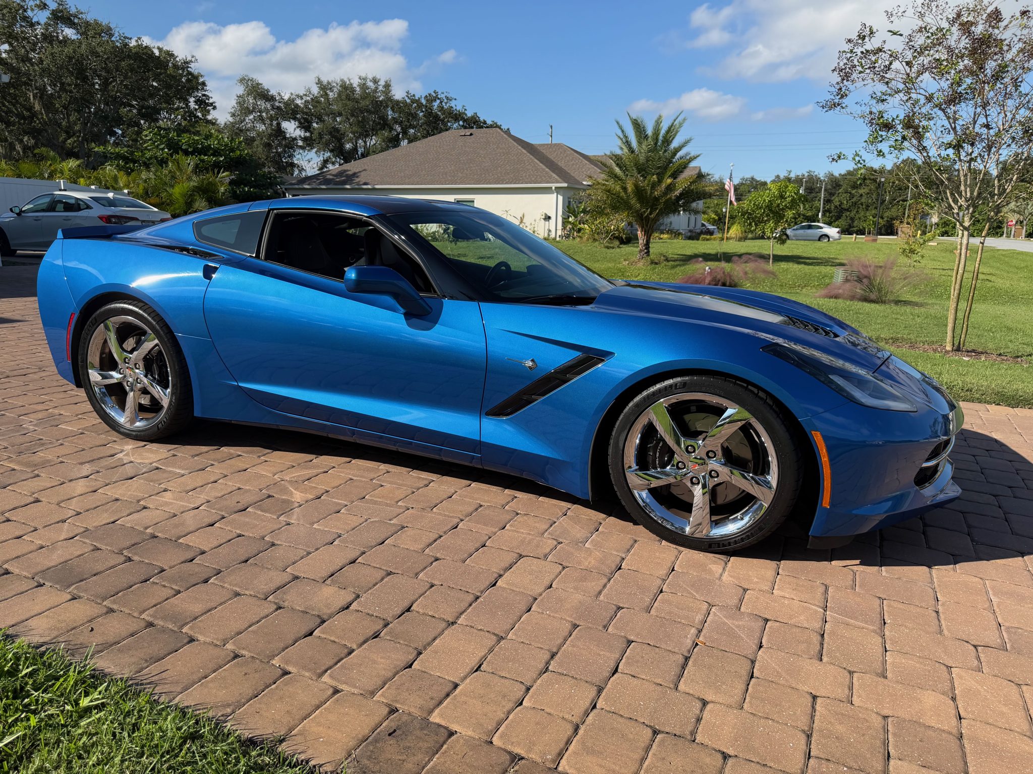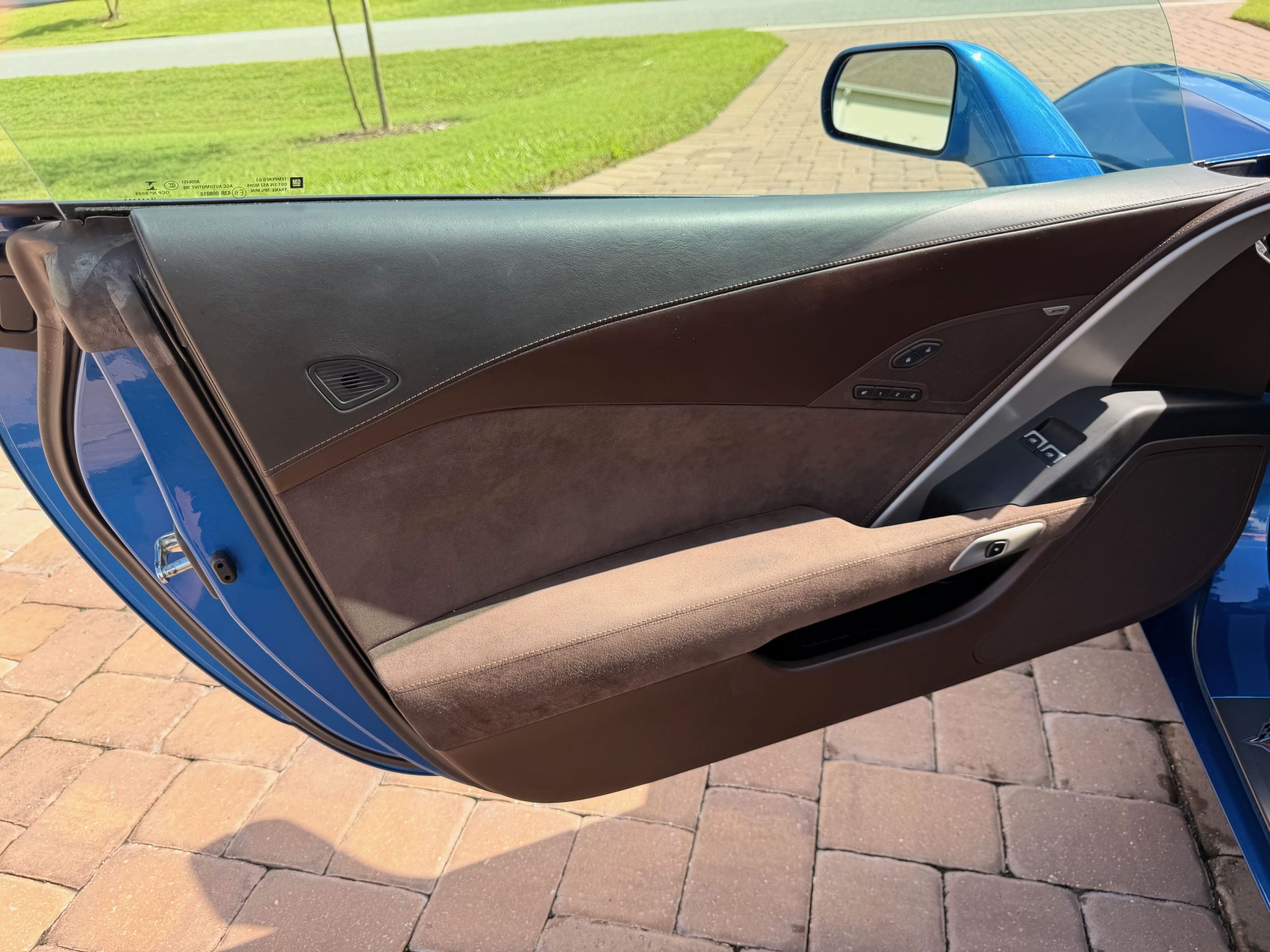 The car has 12k miles Power is provided by a 6.2-liter LT1 V8 linked with a seven-speed manual gearbox and a limited-slip differential. Finished in Laguna Blue Tintcoat over Brownstone leather, the car is equipped with the Z51 Performance Package, the 3LT Preferred Equipment Group, chrome 19″ and 20″ multi-spoke alloy wheels, Magnetic Ride Control, a Corsa Performance exhaust system, xenon headlights, a carbon-fiber roof panel, a rear spoiler, heated and ventilated bucket seats, a head-up display, a Bose sound system, and MyLink infotainment with navigation.