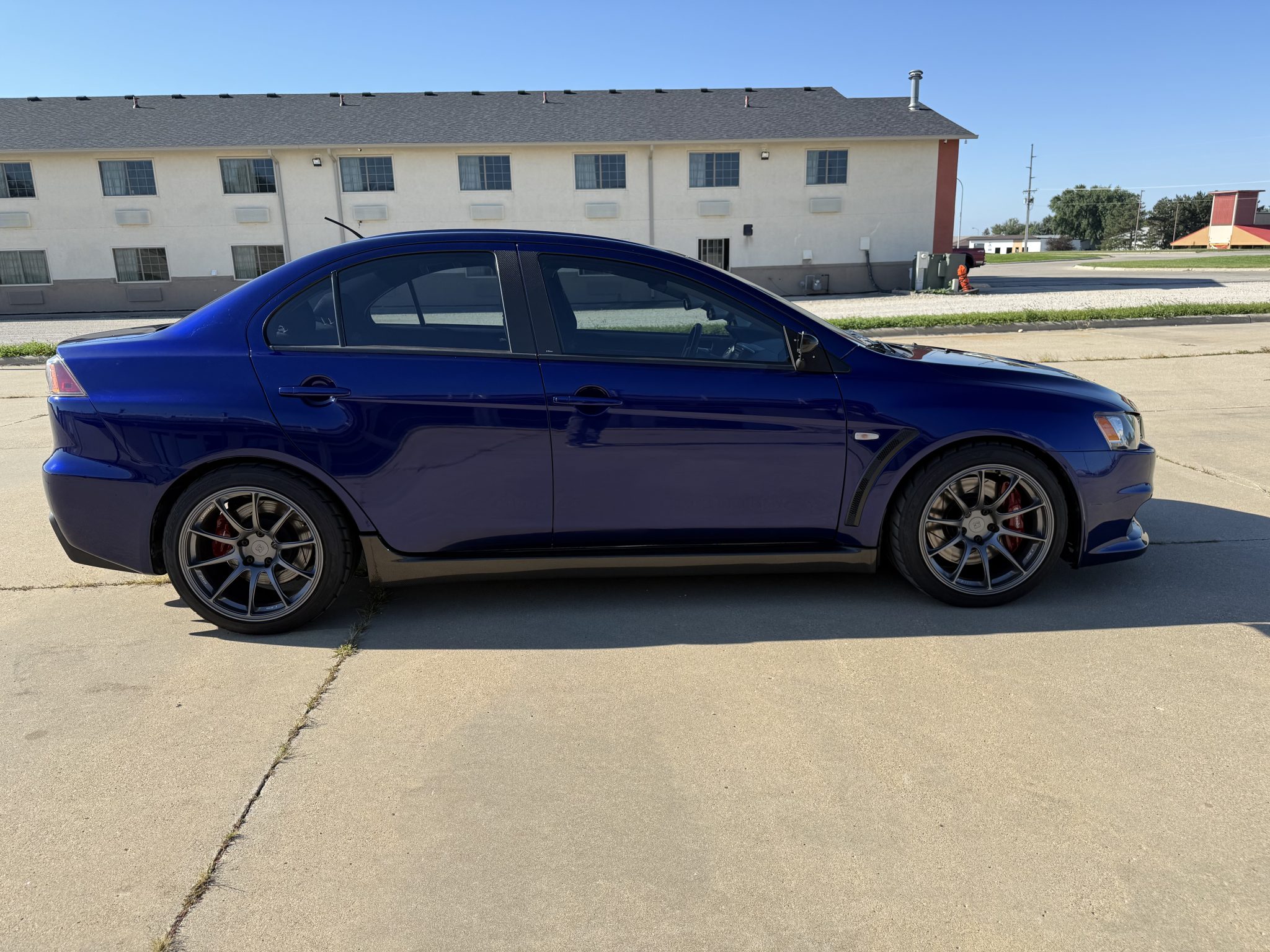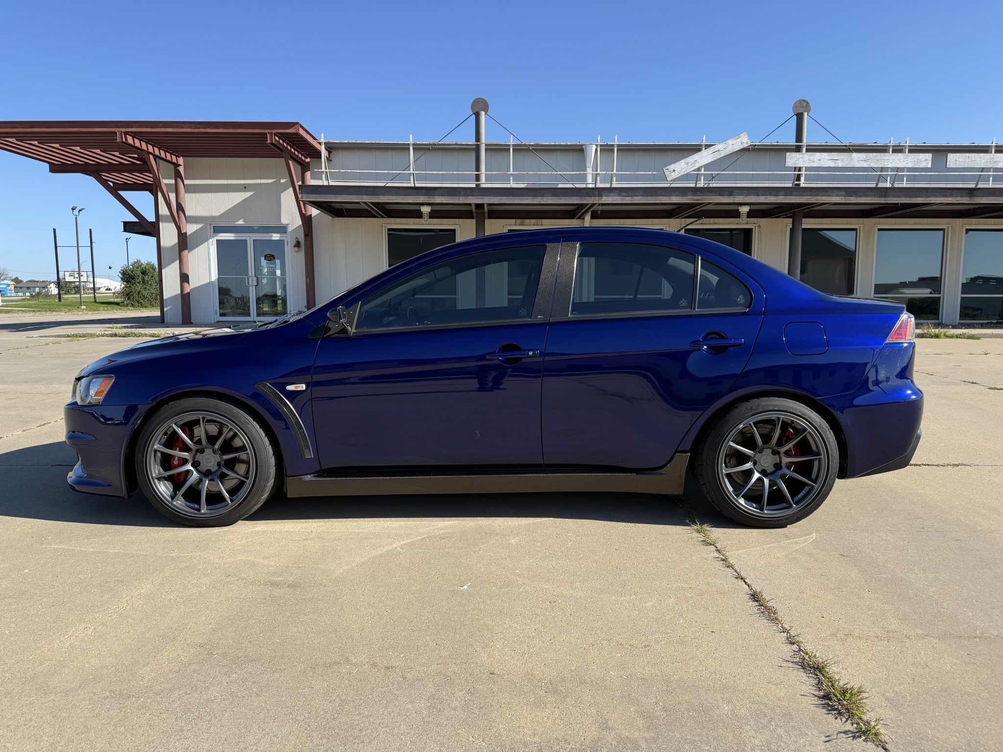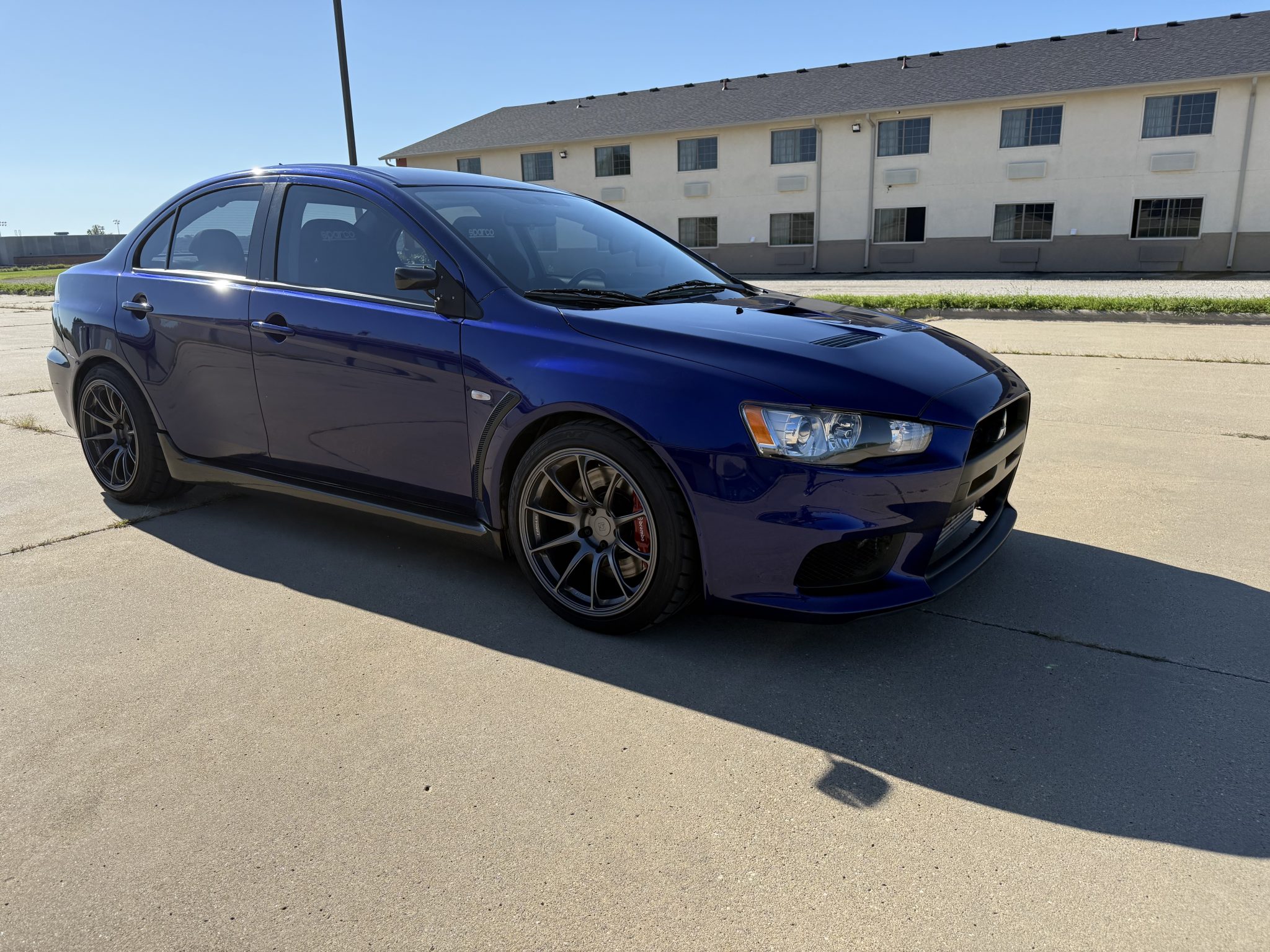 This 2014 Mitsubishi Lancer Evolution X GSR was modified with the installation of an AMS Performance 2.0-liter inline-four crate engine that was equipped with an Extreme Turbo Systems kit with a Performance Turbo & Engine turbocharger as well as an Extreme Turbo Systems intercooler, a ported intake manifold, a flex fuel kit, and TephraXMOD V3 tuning. The five-speed manual transaxle was also overhauled at that time, and an Evo 8-sourced rear differential was installed along with a two-piece rear drive shaft and level 5 axles from the DriveShaft Shop. The car rides on Titan 7 18″ wheels and Tein coilovers, and other components include a Whiteline sway bar kit, Brembo calipers, PowerStop rotors, and a catless Vibrant exhaust system.