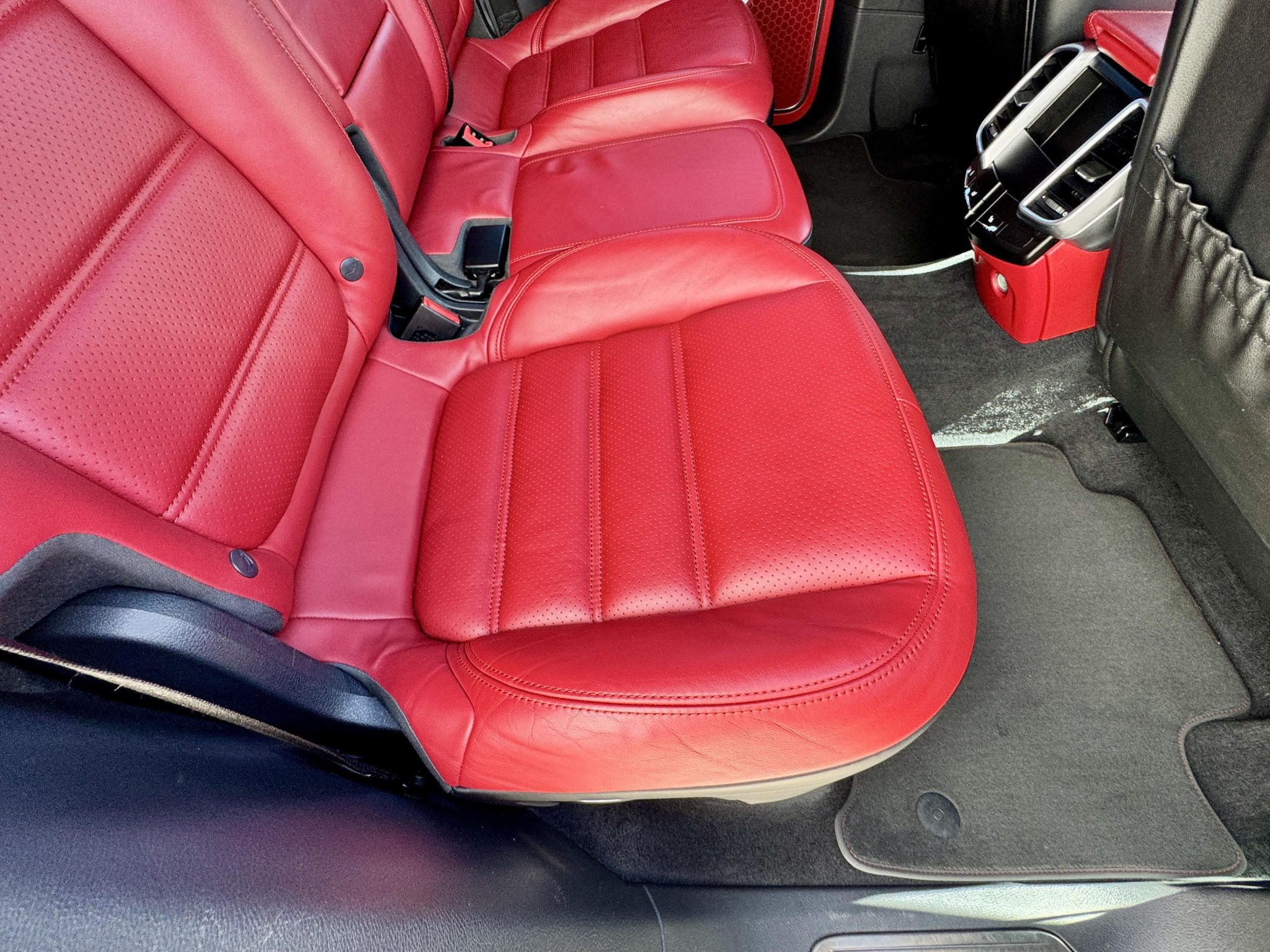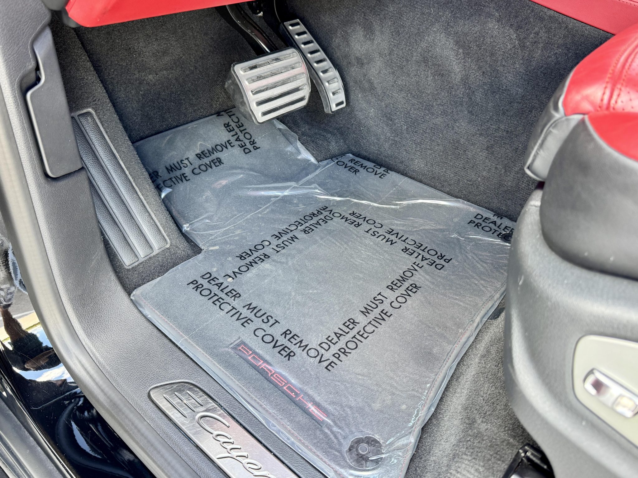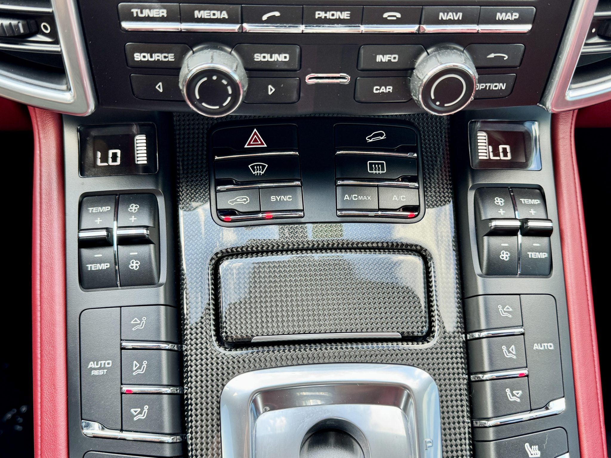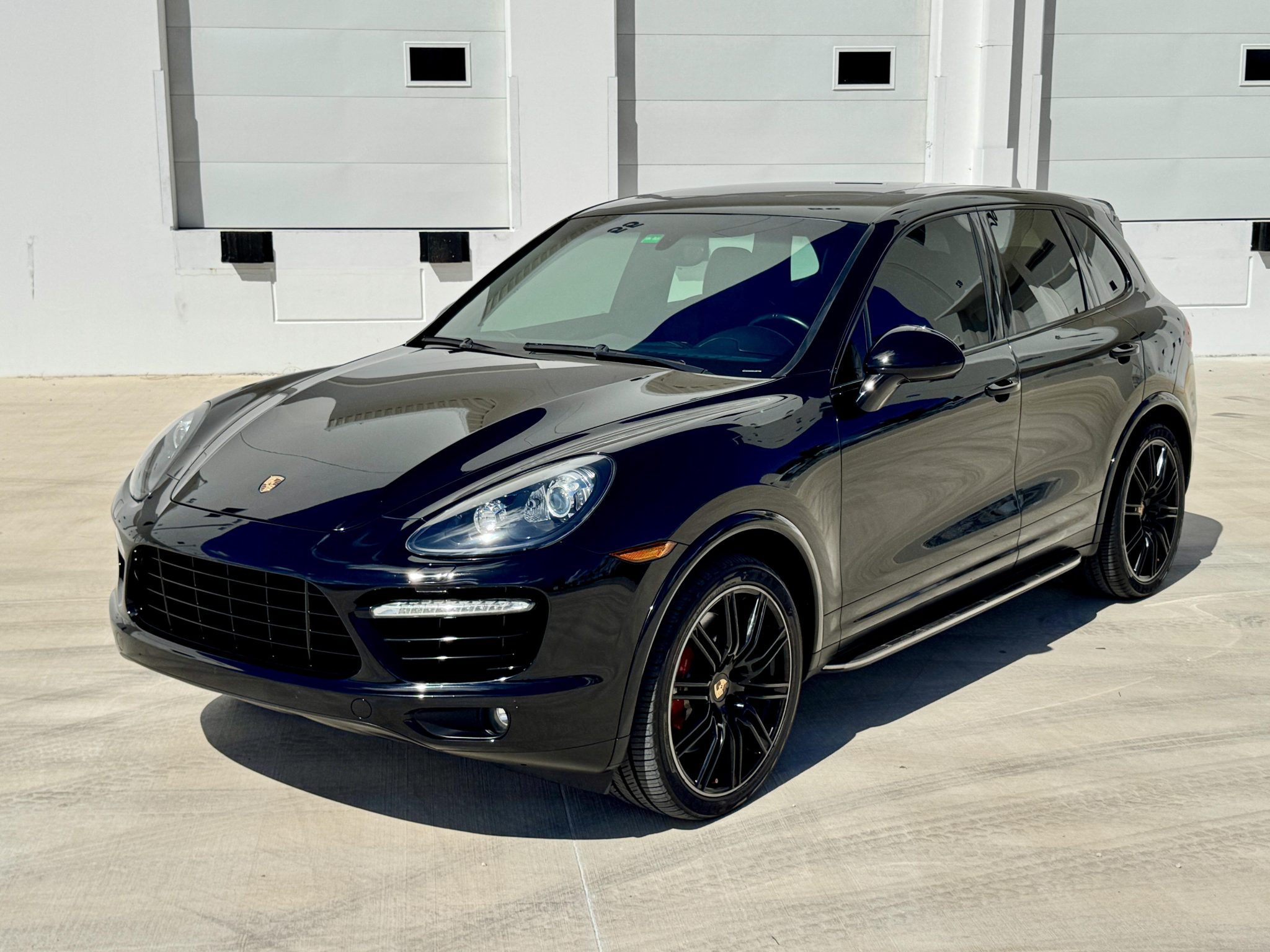 This 2014 Porsche Cayenne Turbo S is finished in Black over Carrera Red and Black leather and has 26k miles Equipment includes Burmester audio, a panoramic sunroof, running boards, 21″ Cayenne SportEdition wheels, heated front Adaptive Sport Seats, PCM with navigation, and Black xenon headlights with PDLS+. Power is provided by a 550-horsepower twin-turbocharged 4.8L V8 linked with an eight-speed Tiptronic S automatic transmission and locking center and rear differentials with PTV+.