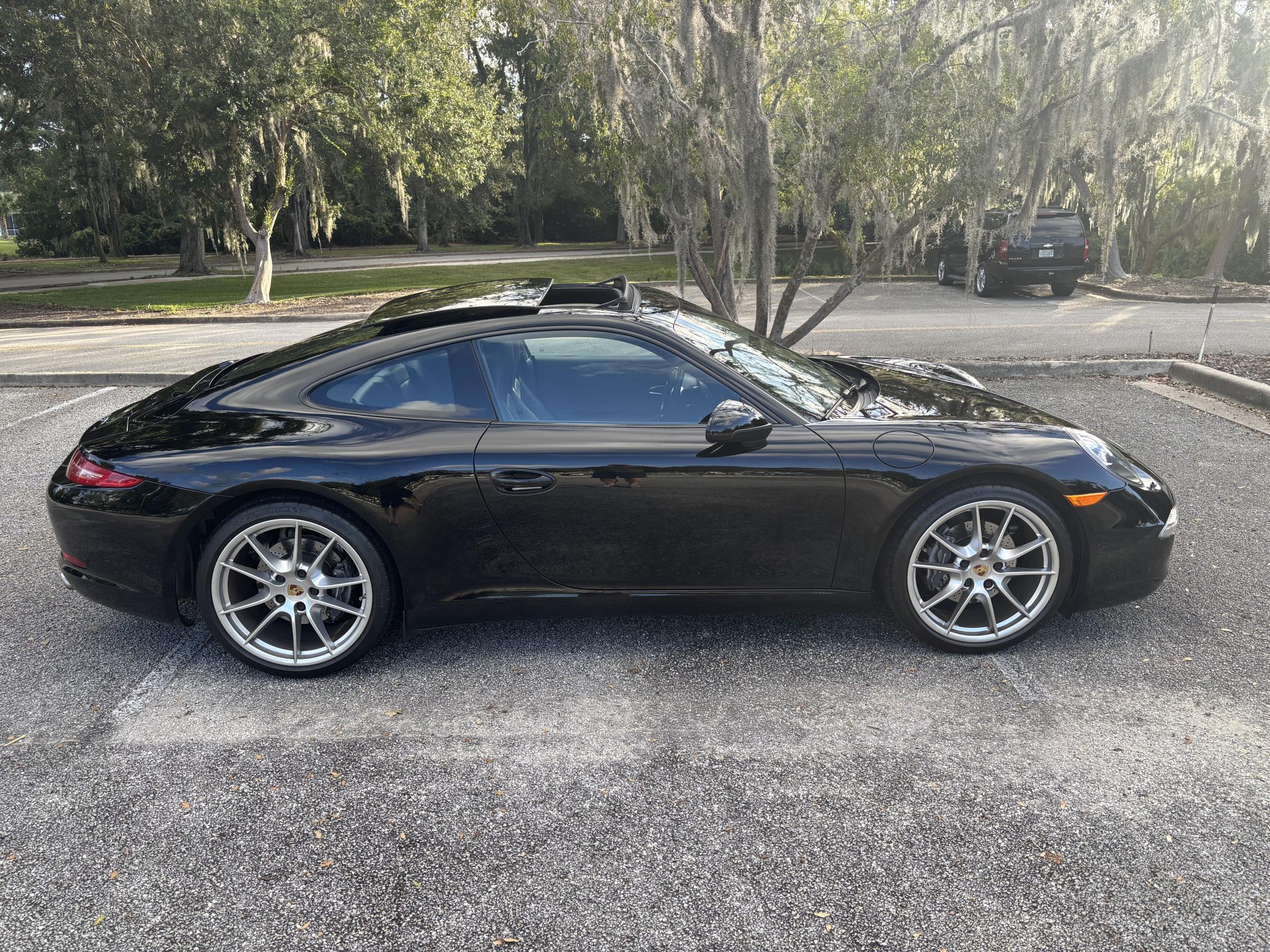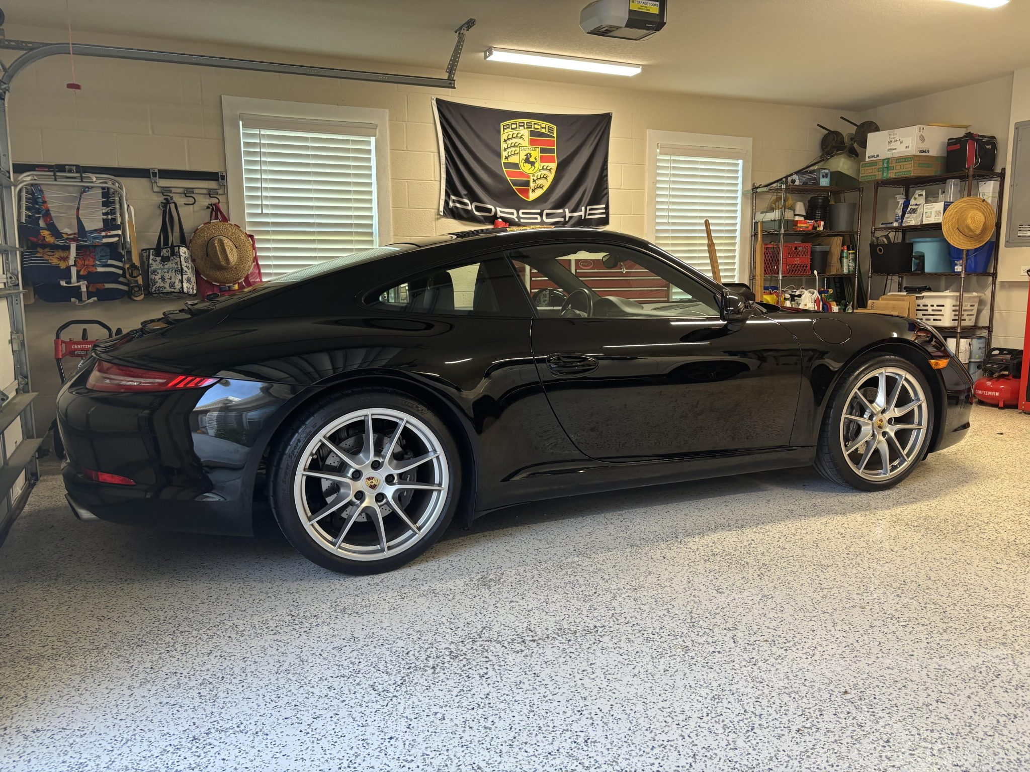 This 2015 Porsche 911 Carrera is a black-over-black coupe was optioned with the Premium and Bose Audio packages. Powered by a 3.4-liter flat-six paired with a seven-speed PDK automatic transaxle, the car has 25k miles and is further equipped with 20″ Carrera S alloy wheels, a sunroof, bi-xenon headlights with PDLS, ParkAssist, heated power-adjustable front seats, Porsche Communication Management with navigation, a Bose sound system, and dual-zone automatic climate control.