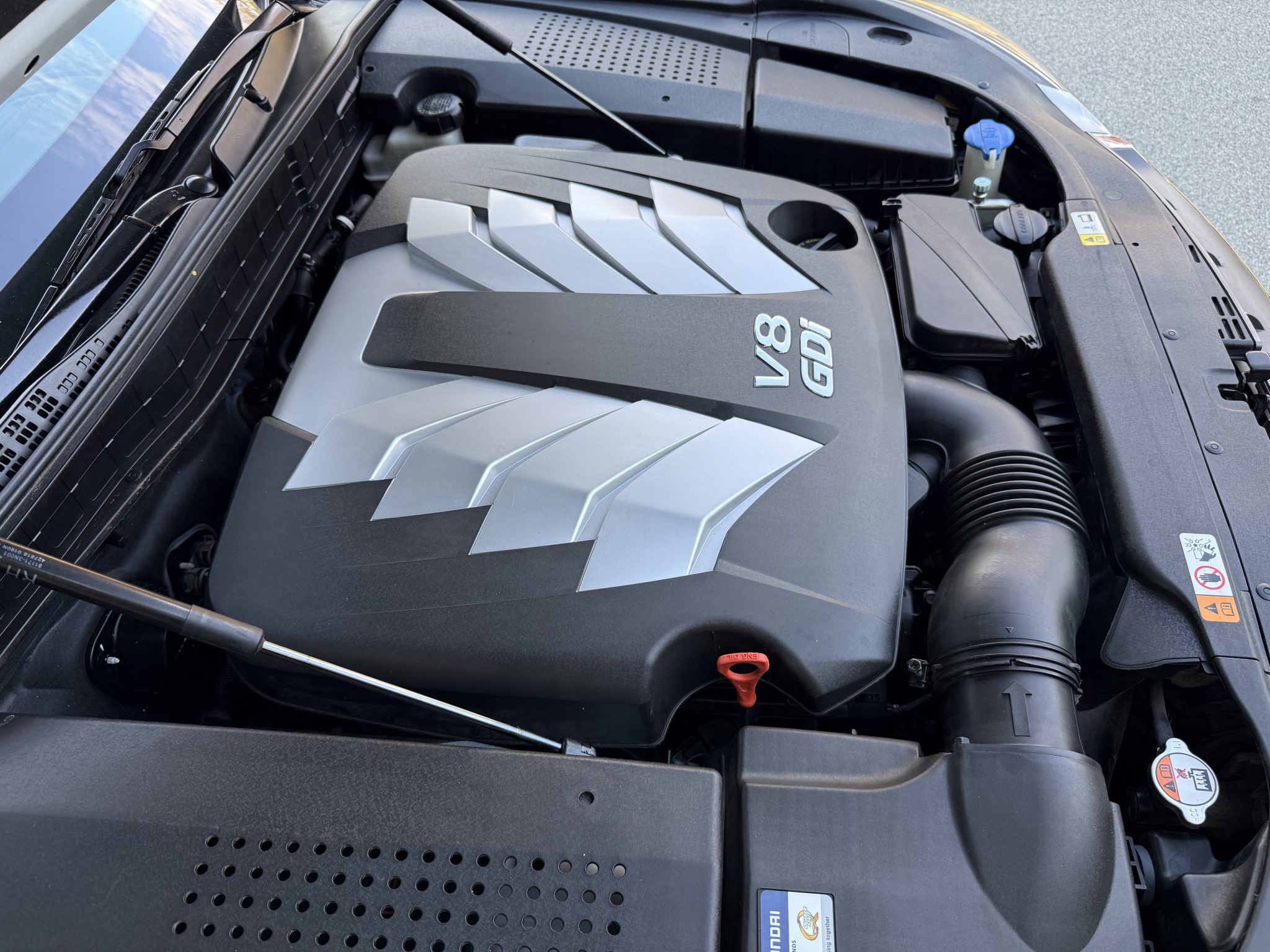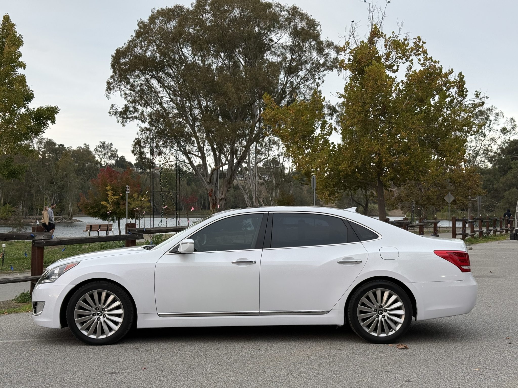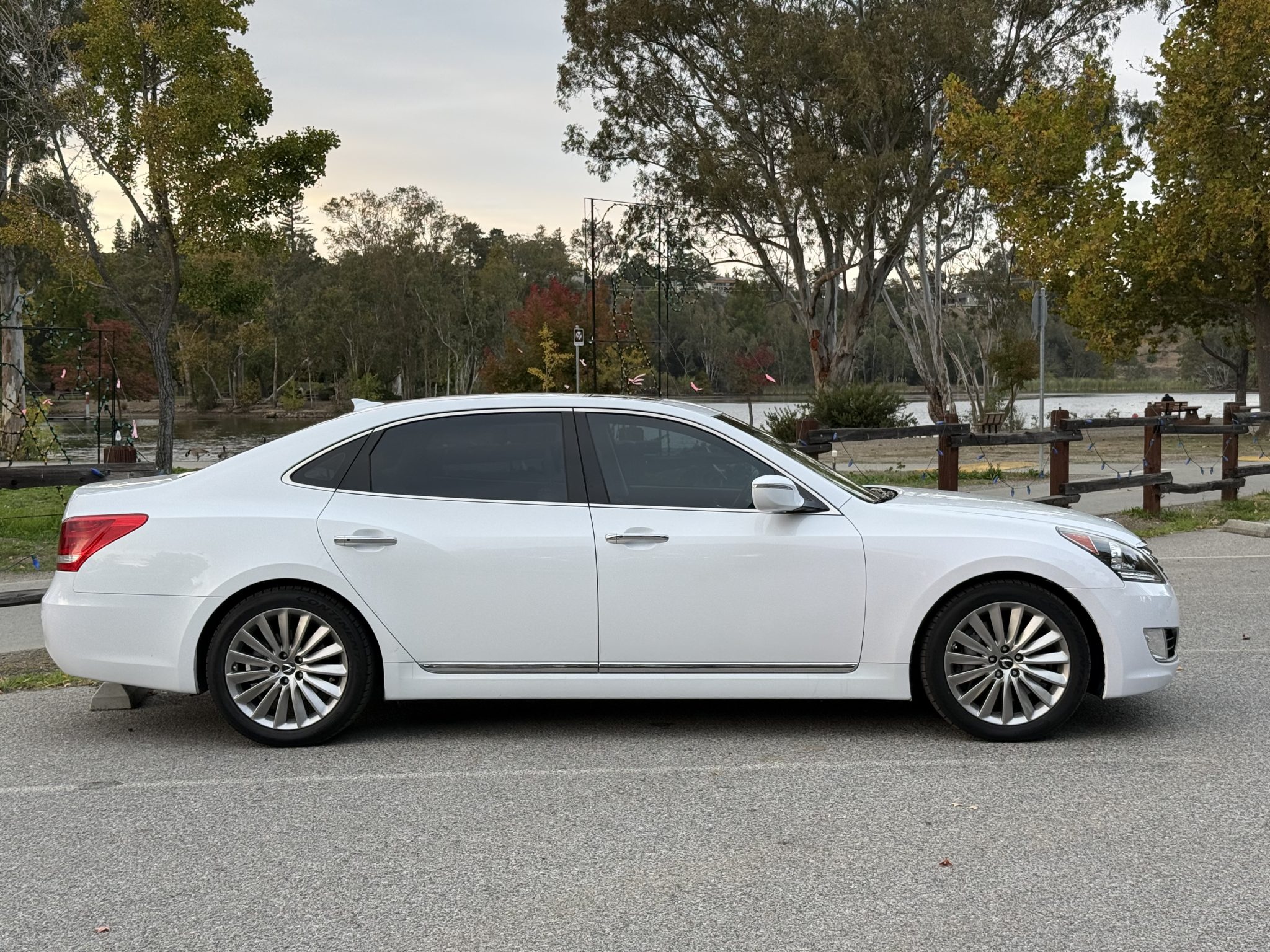 The car is finished in Casablanca White Pearl over Ivory leather, and it is powered by a 5.0-liter Tau V8 linked with an eight-speed automatic transmission. Equipment includes a power sunroof, 19″ multi-spoke alloy wheels, HID headlights, parking sensors, air suspension, wood interior trim, heated and power-adjustable seating, adaptive cruise control, tri-zone automatic climate control, a touchscreen infotainment system with navigation, and a Lexicon surround sound system.