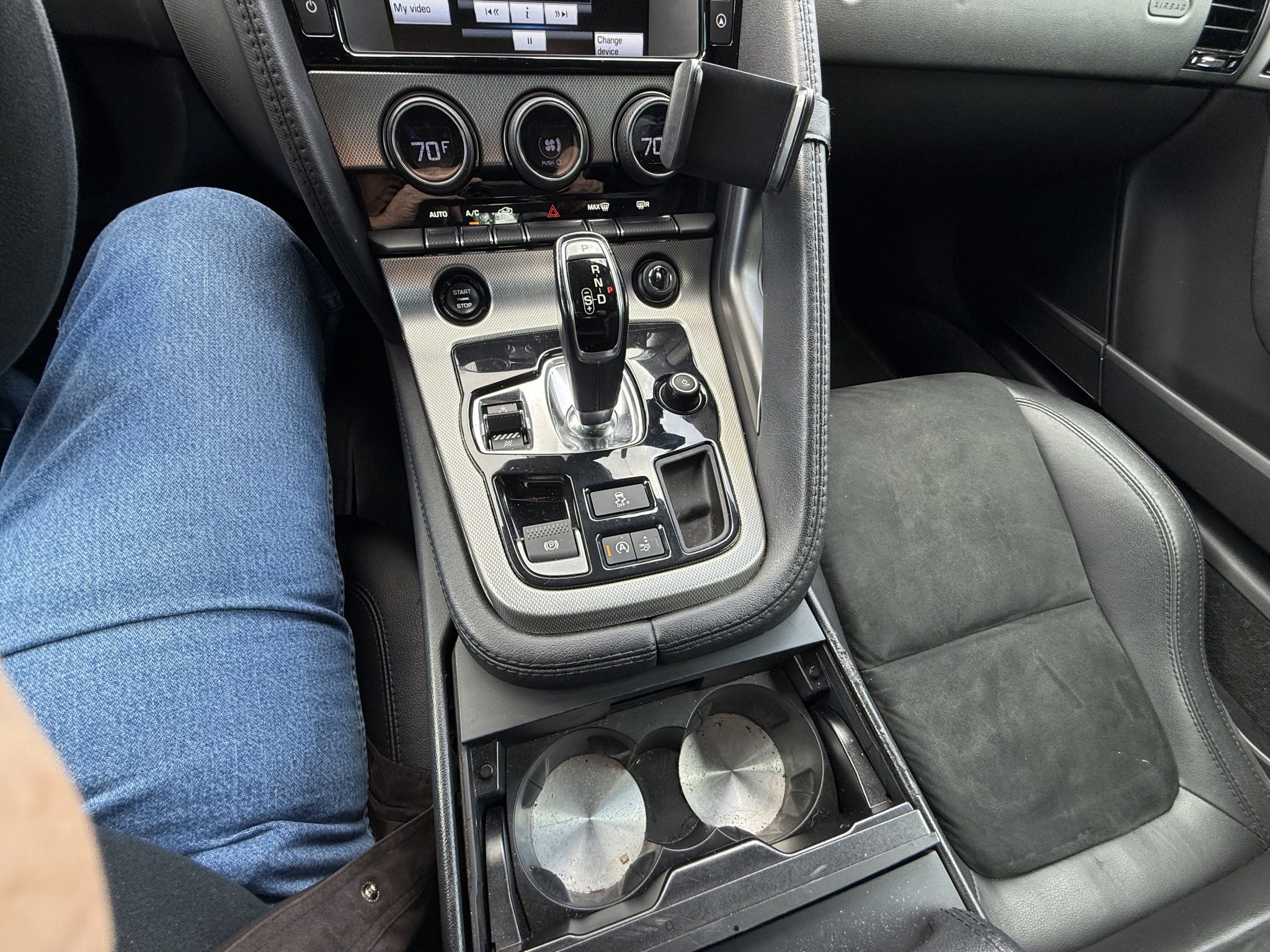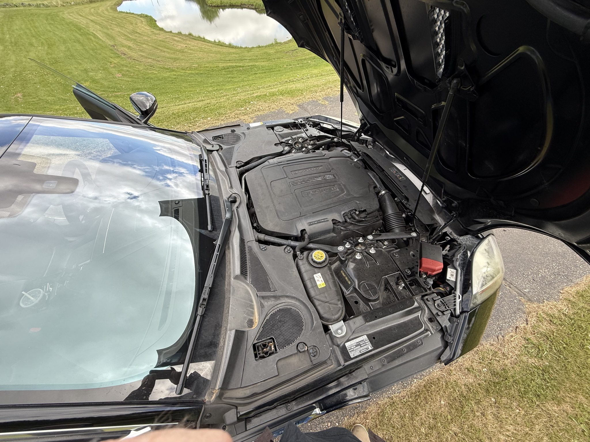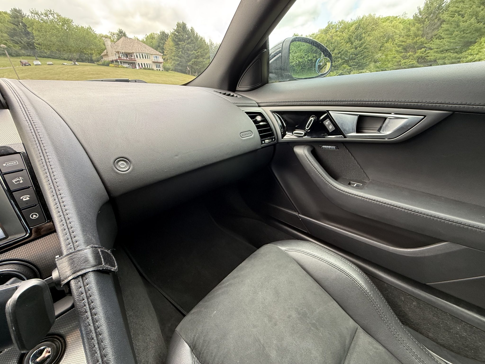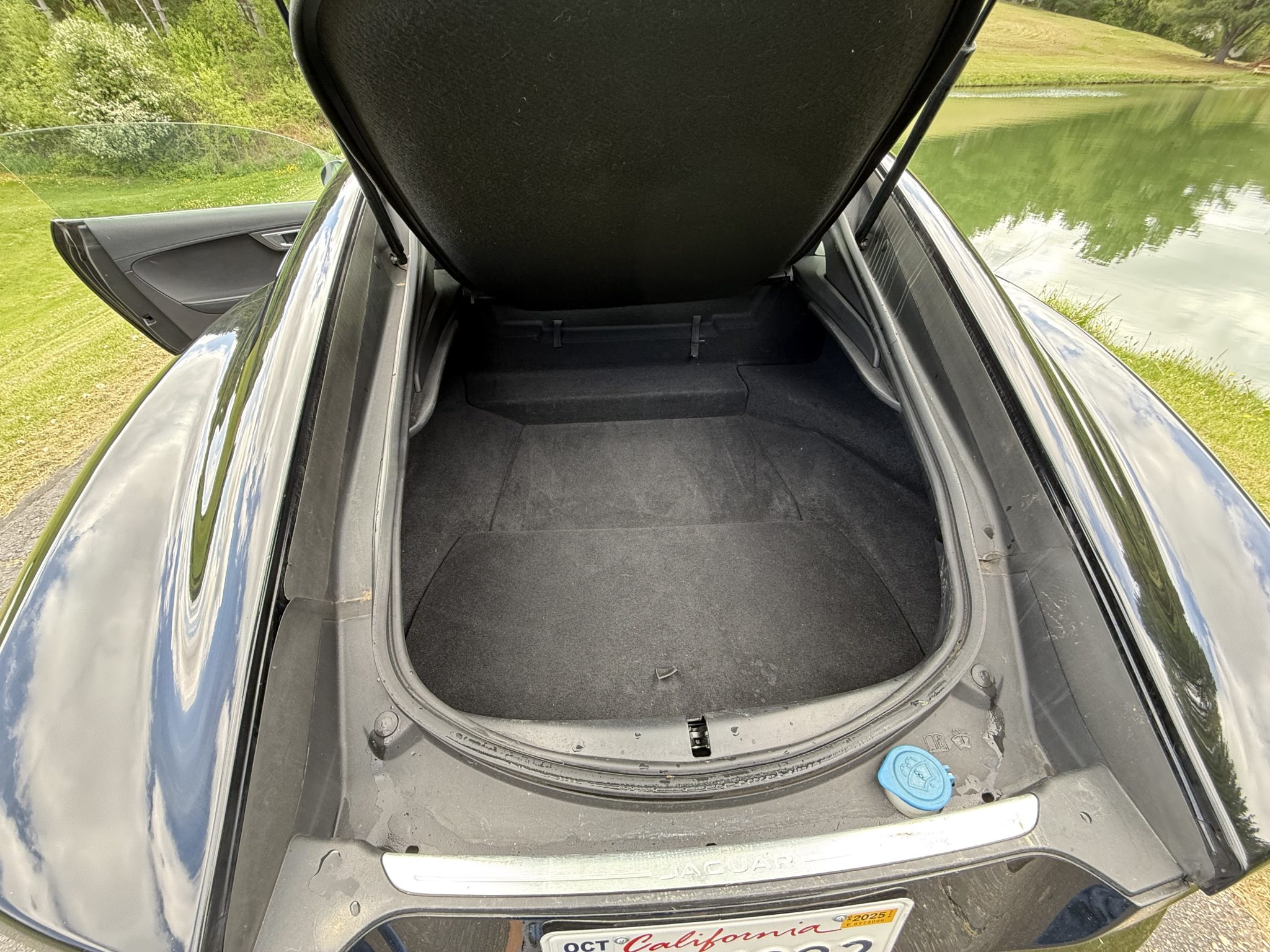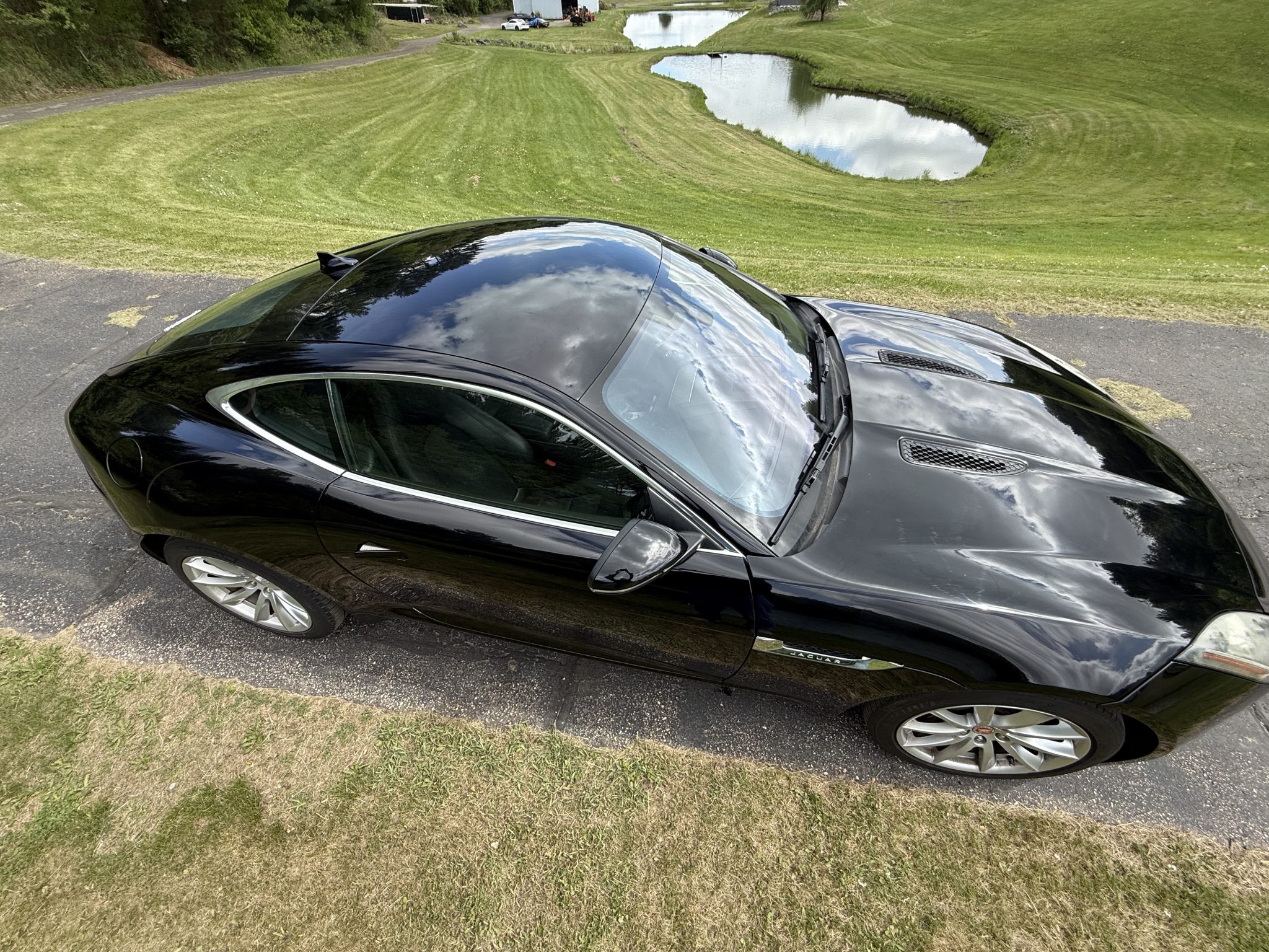 This 2017 Jaguar F-Type coupe is finished in Ebony Black over Jet leather and Suedecloth and is powered by a supercharged 3.0-liter V6 paired with an eight-speed automatic transmission. Equipment includes a Meridian sound system, 18″ Vela wheels, a rearview camera, and a deployable rear spoiler.