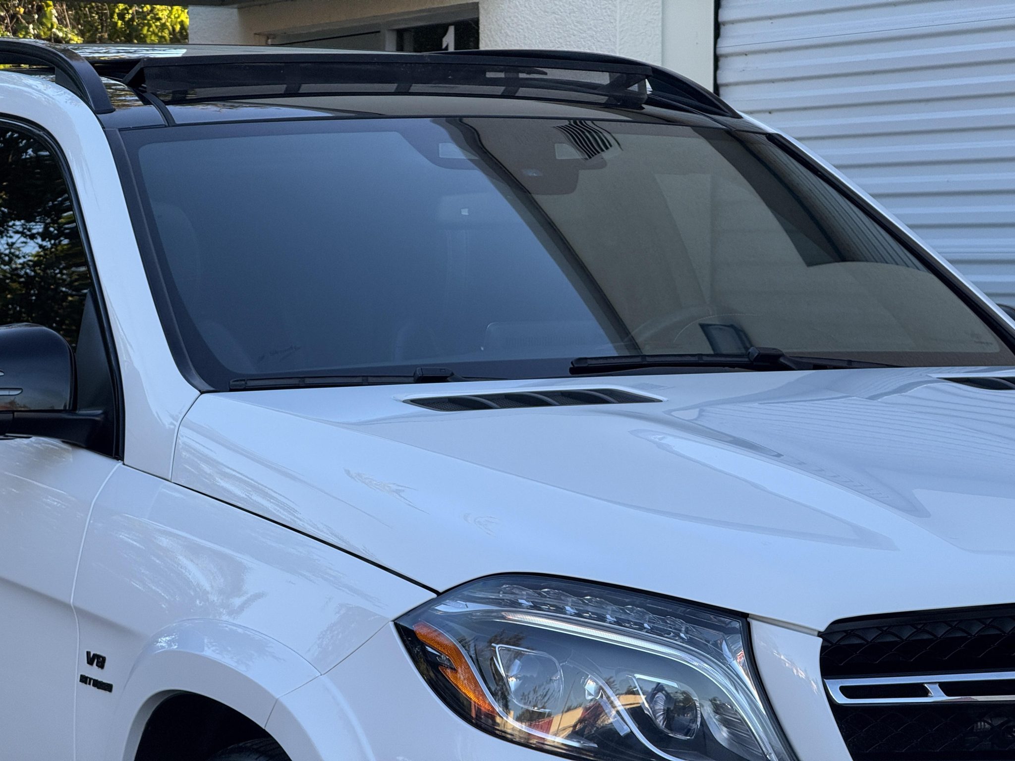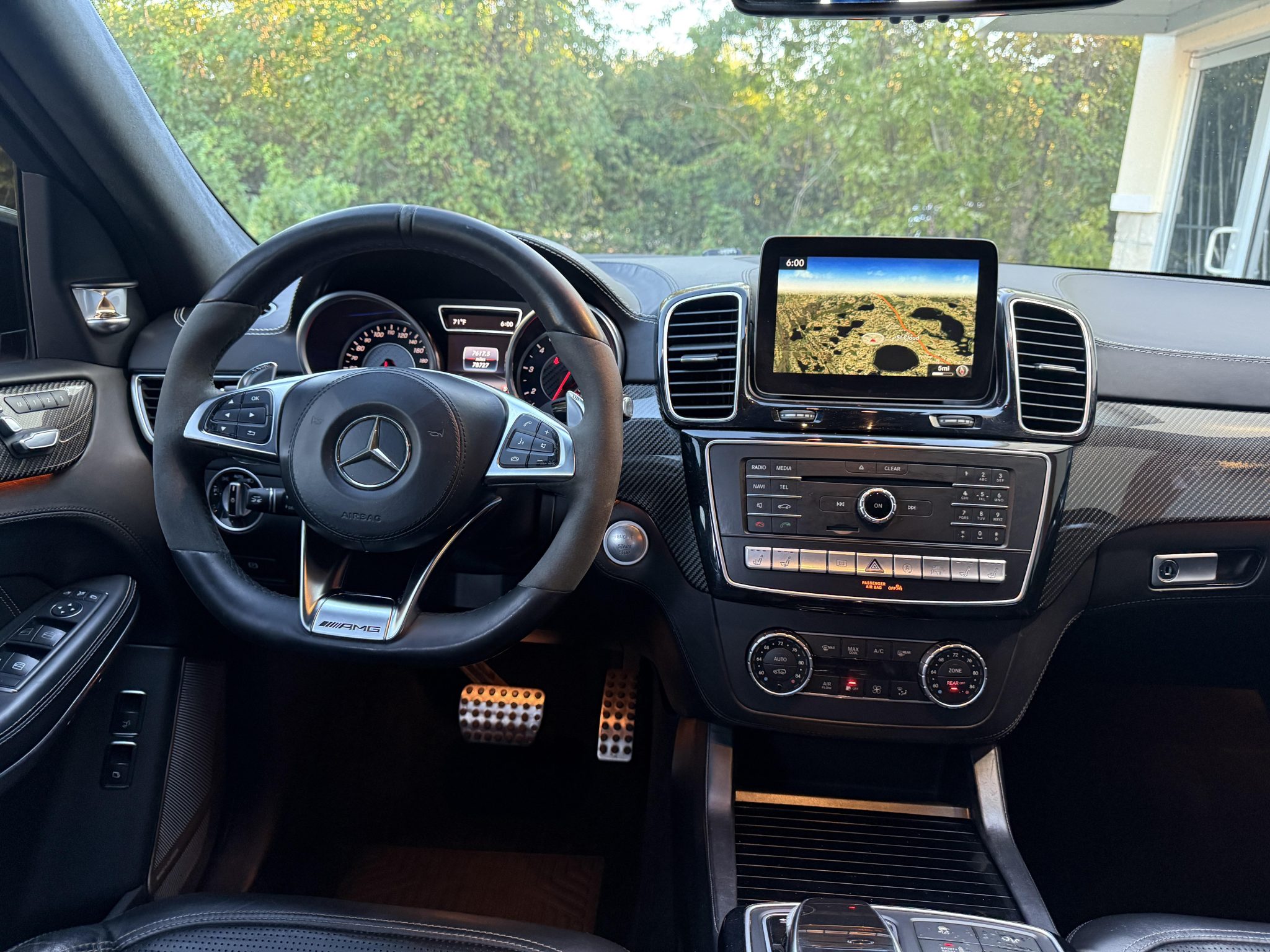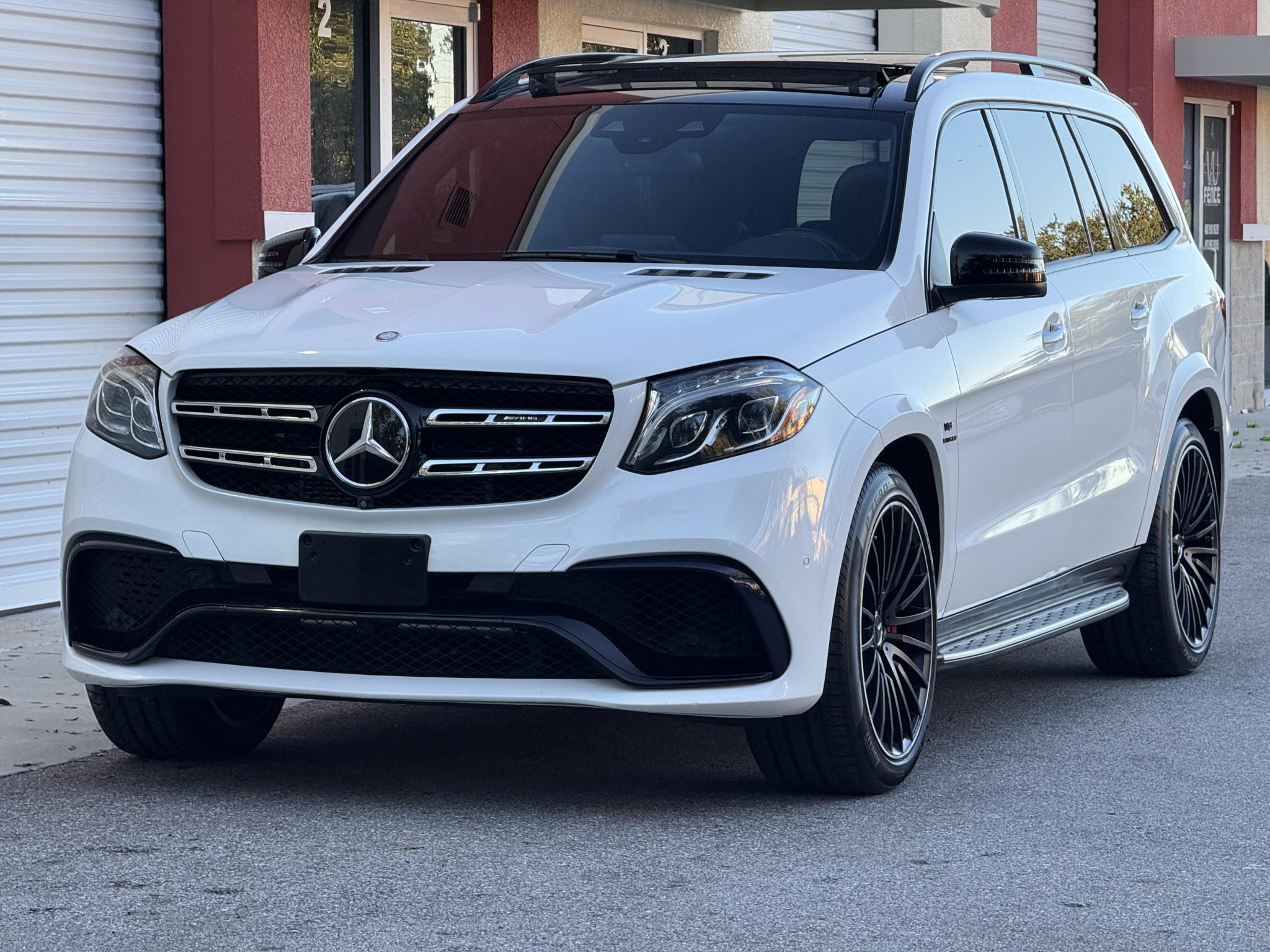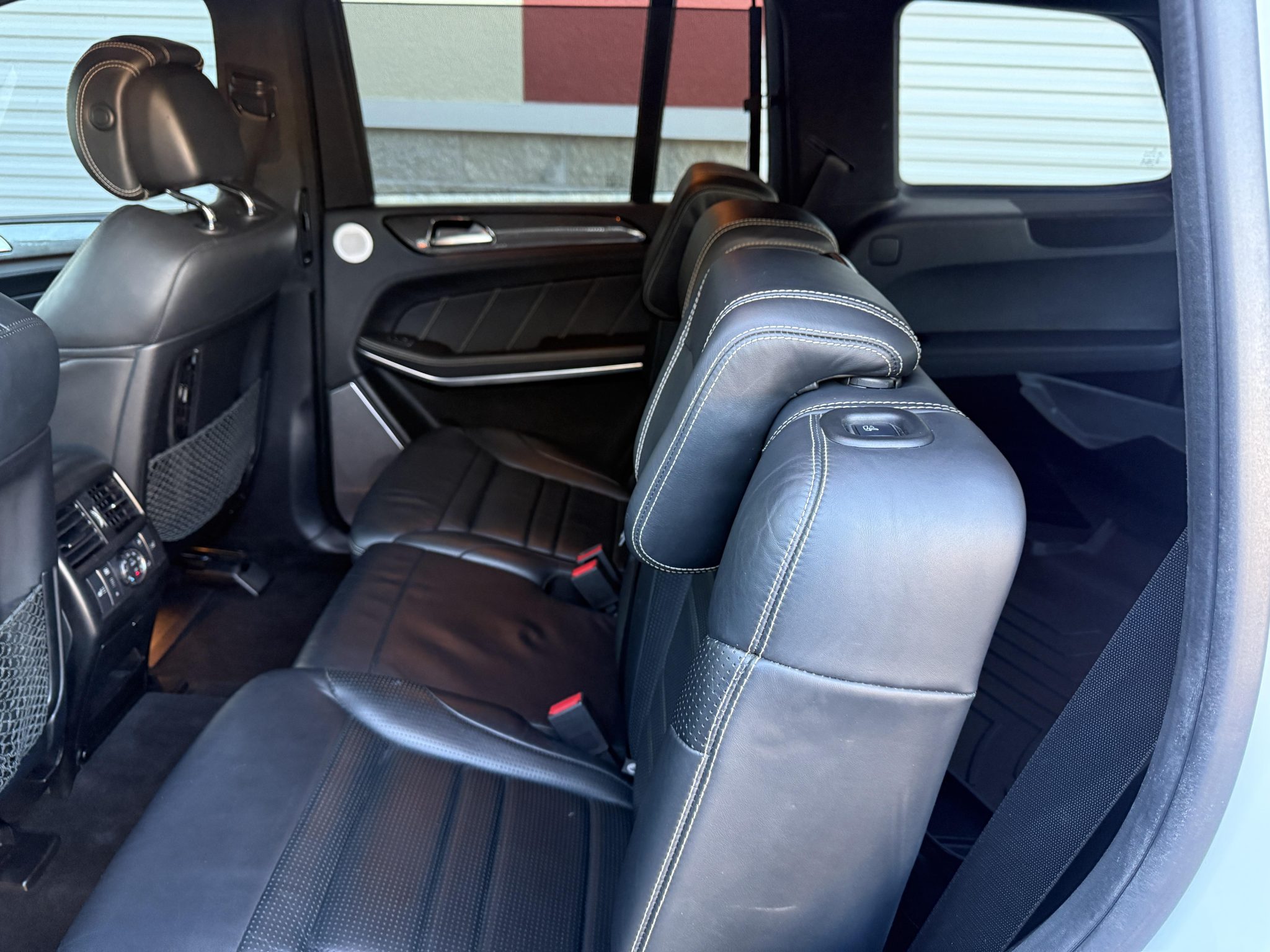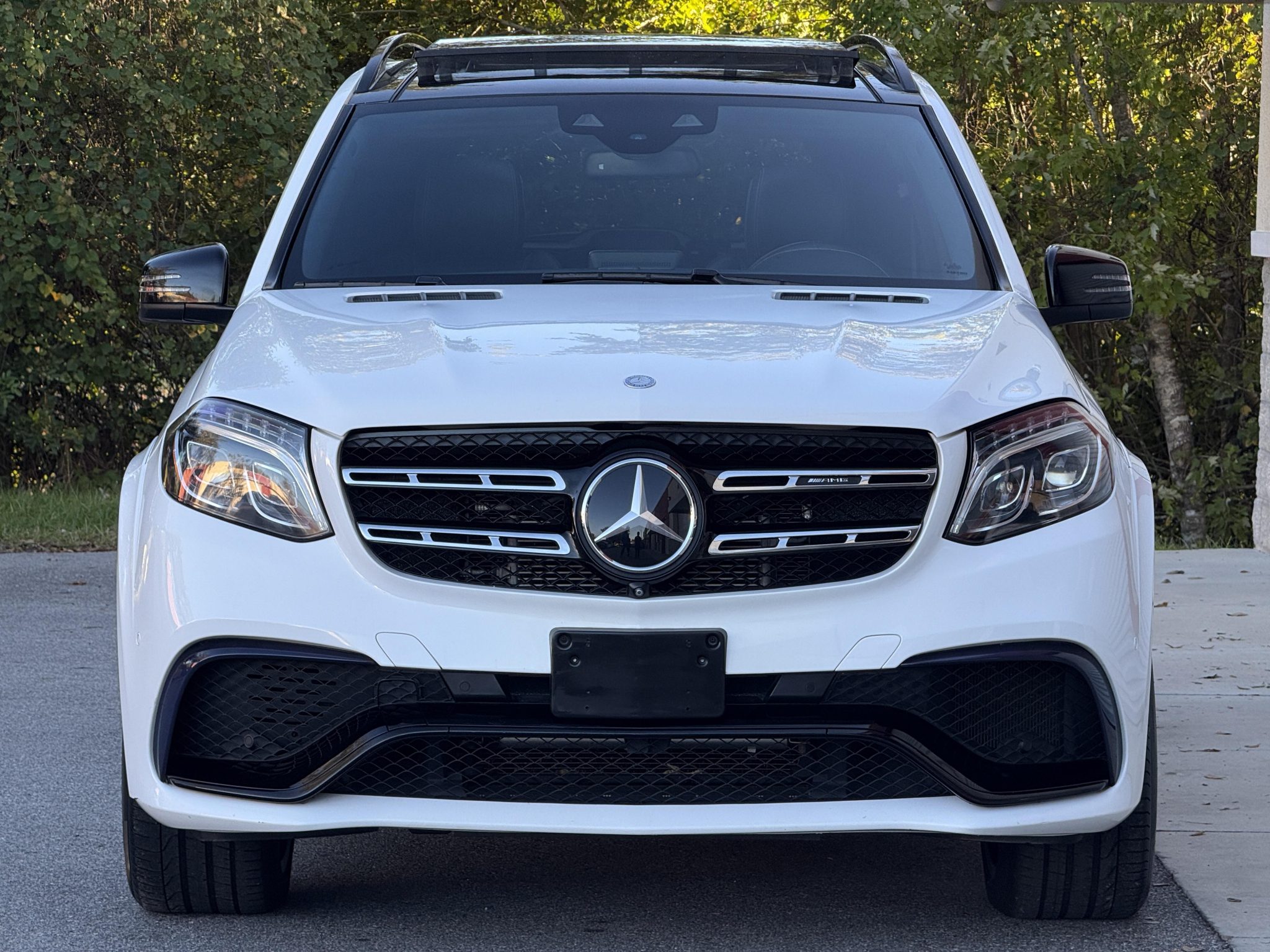 powered by a twin-turbocharged 5.5-liter V8 linked with a seven-speed automatic transmission and a 4MATIC all-wheel-drive system. Finished in Polar White over Black AMG Exclusive Nappa leather, it is equipped with the Premium, Lighting, Driver Assistance, Parking Assist, and Night packages, which together provided active LED headlights, 22″ black AMG wheels, Keyless Go, a Surround View camera system, Distronic Plus adaptive cruise control, Active Blind Spot Assist, and Active Lane Keeping Assist. Additional details include a panoramic sunroof, soft-close doors, multi-contour front seats, heated second-row seats, and a Bang & Olufsen BeoSound system.