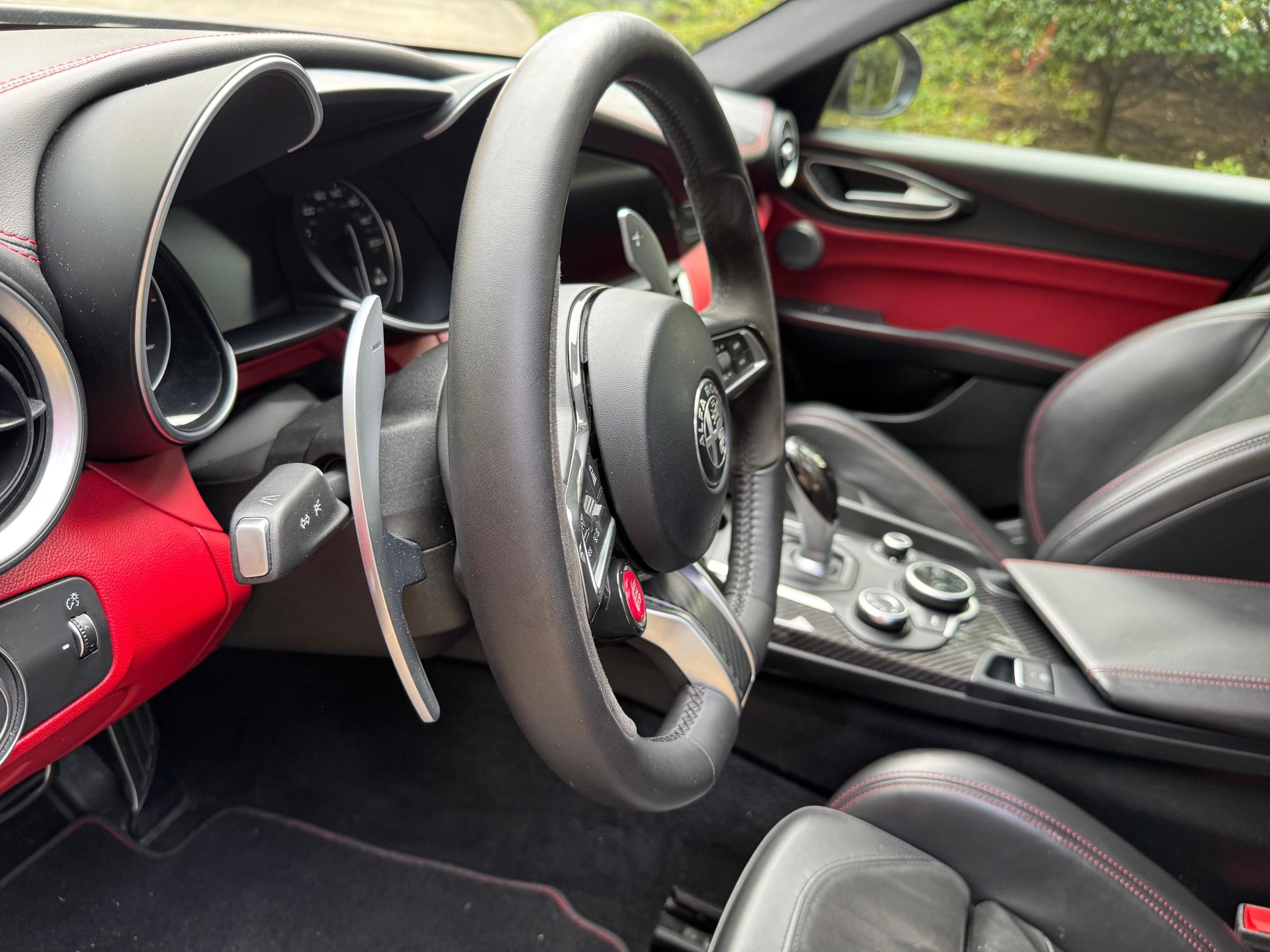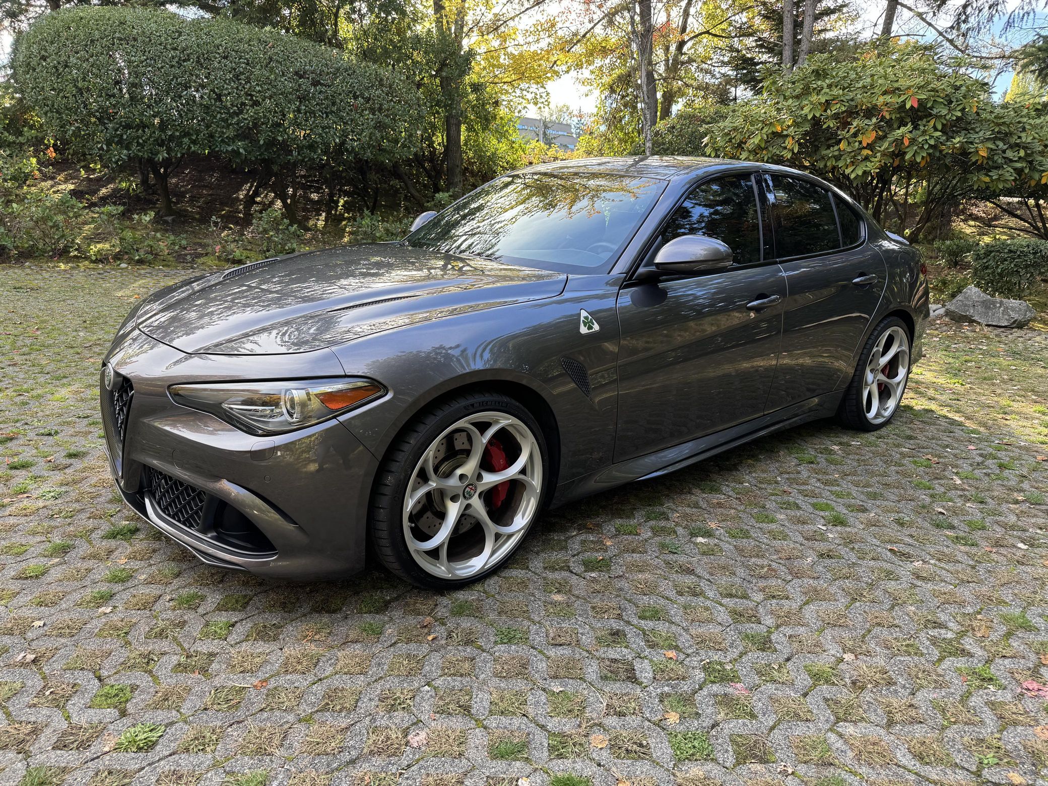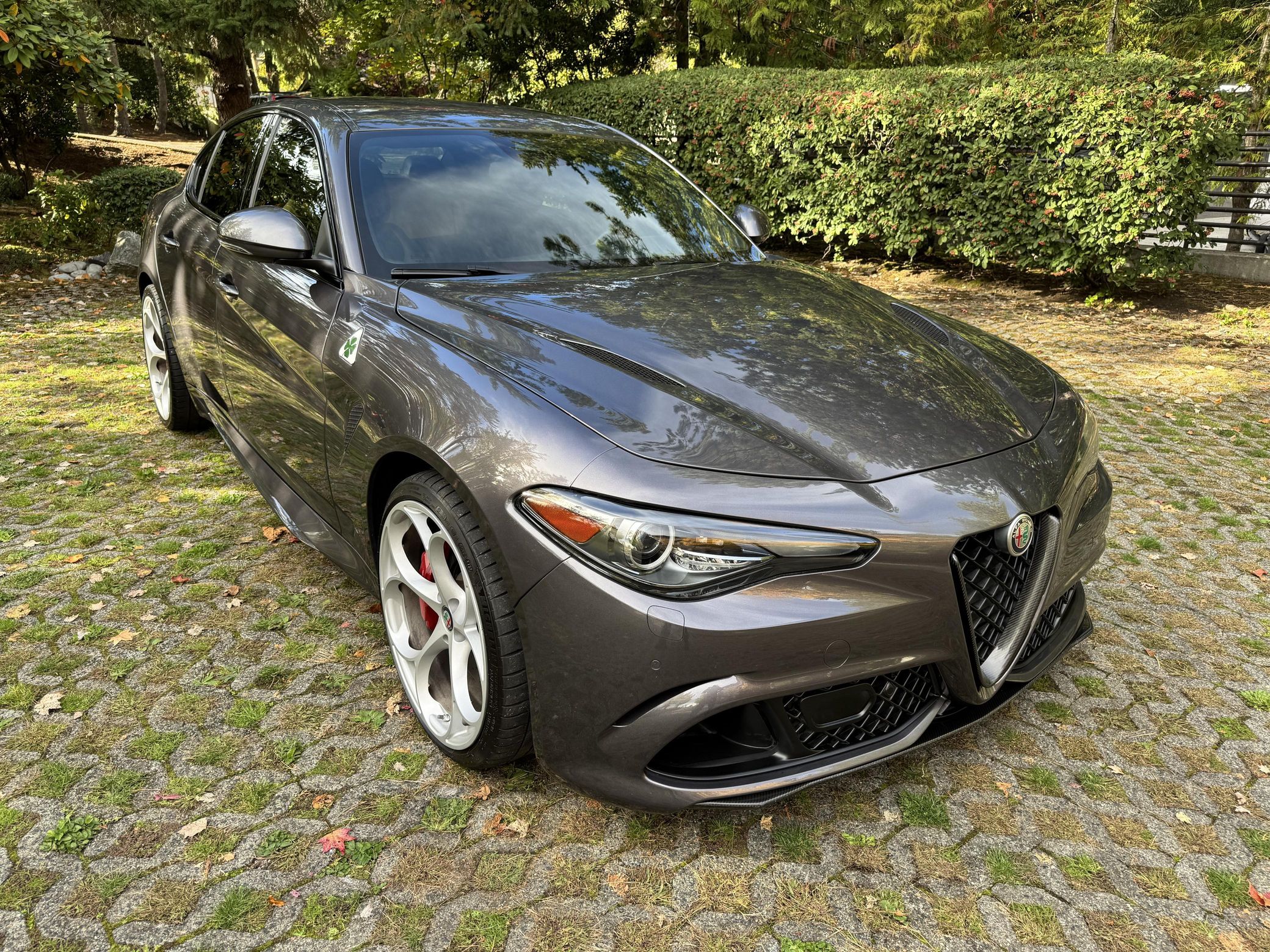 BMW 3 Series. While base models used a 4-cylinder engine, the range-topping Quadrifoglio — which means "four-leaf clover" in Italian — gained a twin-turbocharged V6 and a long list of chassis upgrades in a bid to dethrone the M3. Power comes from a 2.9-liter twin-turbocharged V6, rated at 505 horsepower and 443 lb-ft of torque. Output is sent to the rear wheels via an 8-speed automatic transmission.