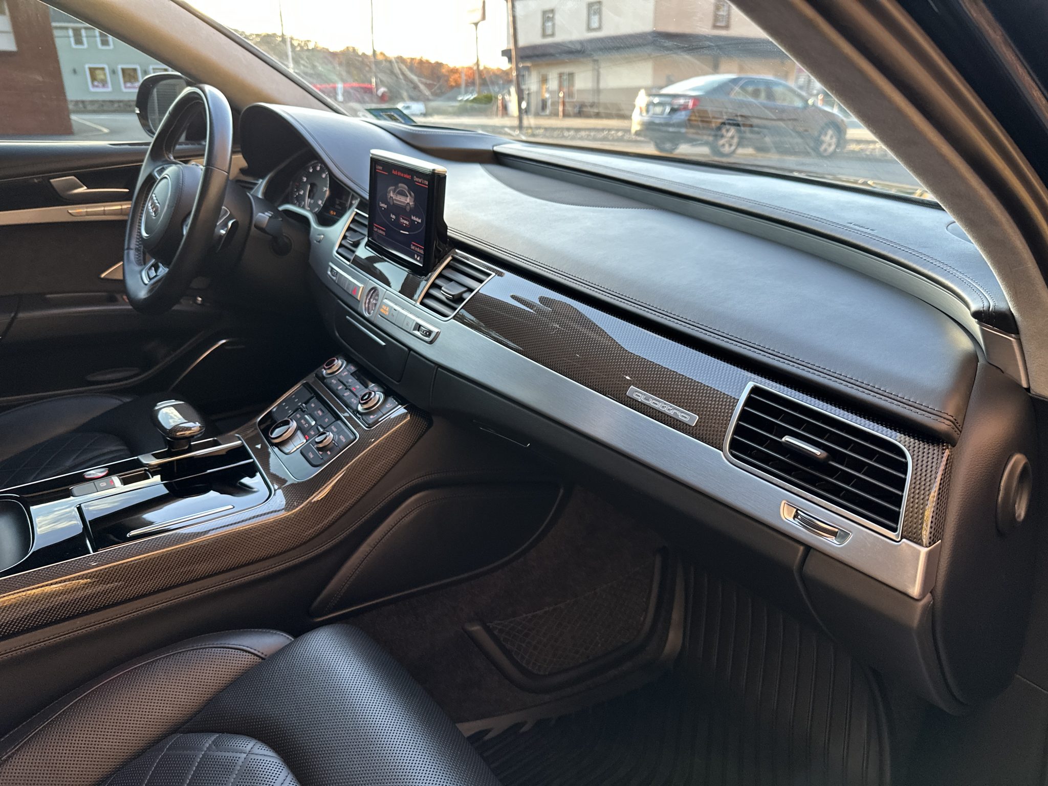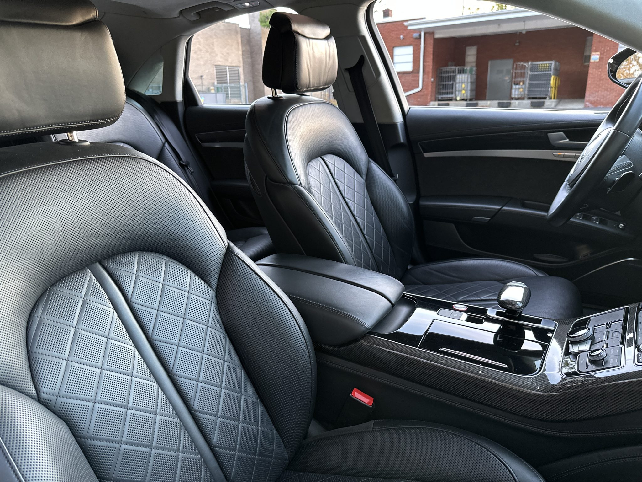This 2018 Audi S8 Plus has 44k miles and was ordered with over $31k in options, including the Bang & Olufsen Advanced Sound system as well as the Dynamic, Black Optic, Full Leather, and Executive Plus packages. The sedan is finished in Mythos Black Metallic over Black leather and is powered by a twin-turbocharged 4.0-liter V8 linked to an eight-speed automatic transaxle and a Quattro all-wheel-drive system with a Sport rear differential. Other equipment includes a Sport exhaust system, ceramic-composite brakes, 21″ five-double-arm wheels, adaptive cruise control, heated rear seats, four-zone climate control, and heated, ventilated, and massaging front seats.