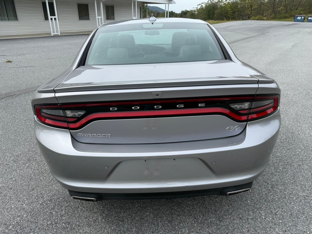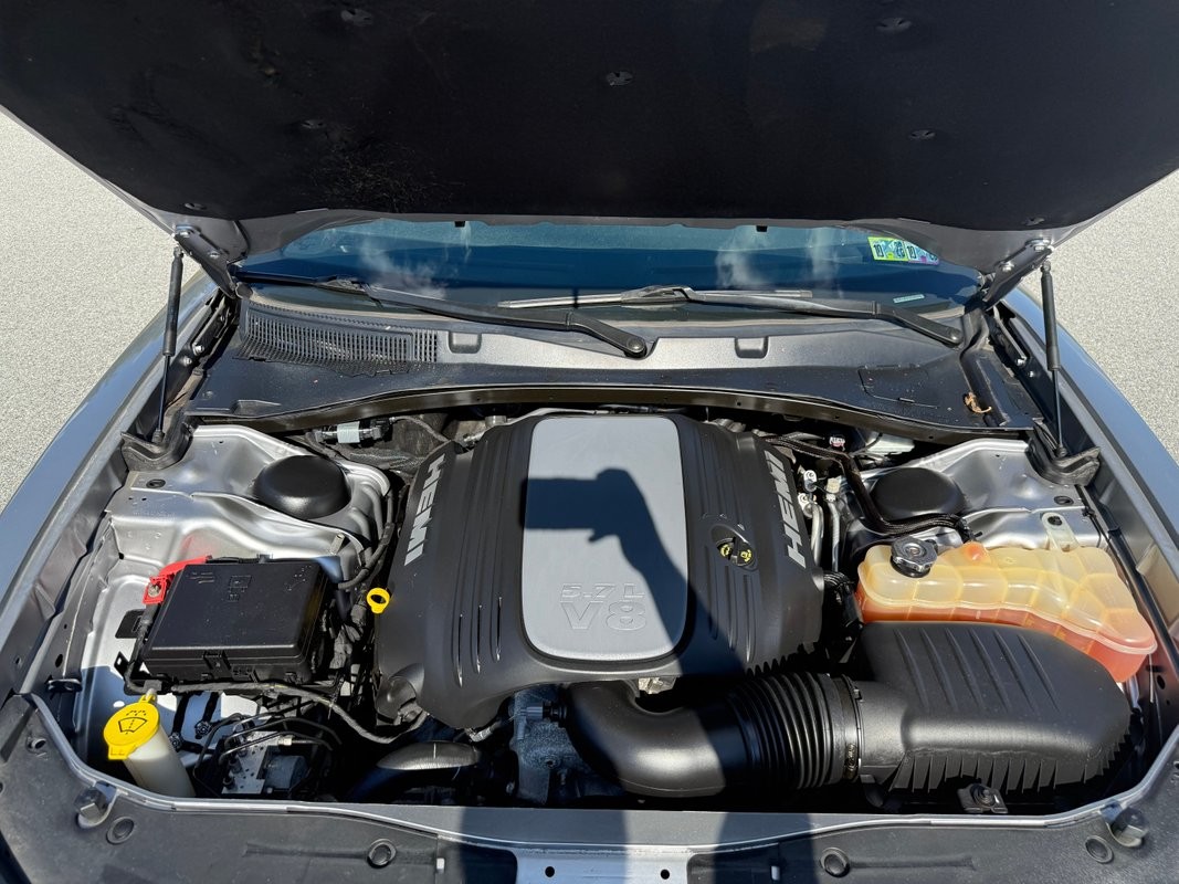 Finished in Billet Silver Metallic Clear Coat with contrasting black accents and aftermarket hood wrap, this Charger stands out with its aggressive styling. Exterior features include a body-color rear spoiler, 20-inch Granite Crystal aluminum wheels, HID projector headlamps, LED fog lamps, and Gloss Black grille for a sharp, performance-oriented look.