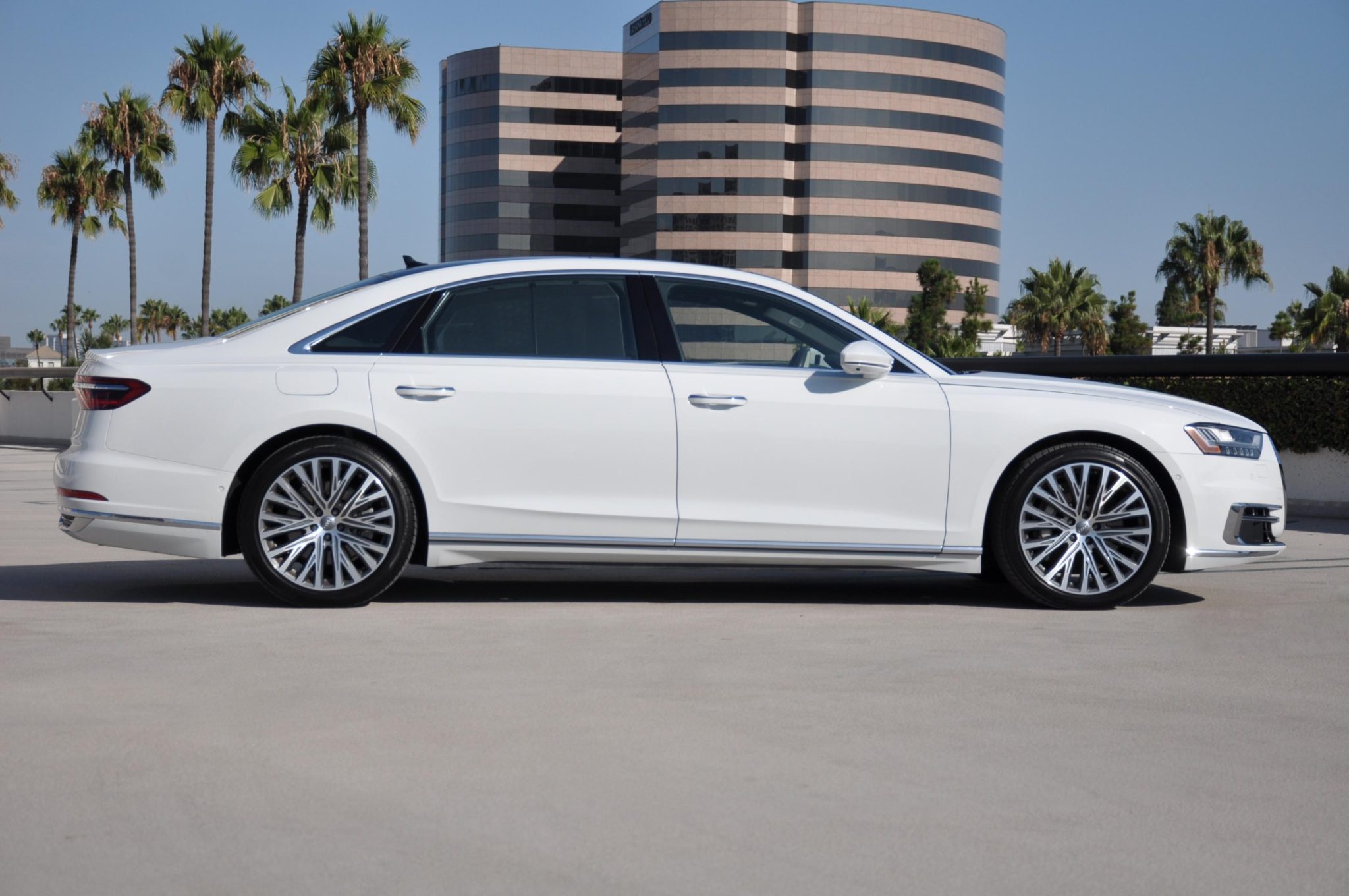 This 2019 Audi A8L has 46k miles  and it was optioned with the Driver Assistance package and Executive package, the latter of which added a heated steering wheel, Audi Side Assist, and heated and ventilated front seats with massaging functions. The car is finished in Glacier White Metallic over black leather and is powered by a turbocharged 3.0-liter V6 linked to an eight-speed automatic transaxle and a Quattro all-wheel-drive system. Additional equipment includes 20″ wheels, an adaptive air suspension, a panoramic sunroof, LED Matrix-Design headlights, a 360-degree camera system, adaptive cruise control, four-zone automatic climate control, and a Bang & Olufsen sound system.