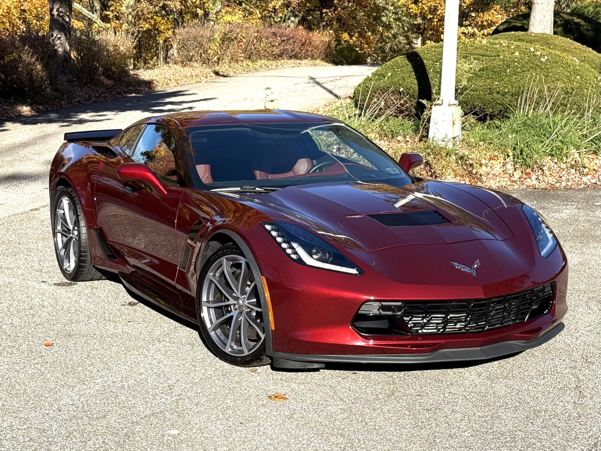 This 2019 Chevrolet Corvette Grand Sport coupe was initially sold by Criswell Chevrolet of Gaithersburg, Maryland, and it now has 144 miles. Finished in Long Beach Red Metallic Tintcoat over Spice Red leather upholstery, it is powered by a 6.2-liter LT1 V8 linked with an eight-speed automatic gearbox and a limited-slip differential. The car was optioned with the 3LT Preferred Equipment Group, aluminum 19″ and 20″ split-spoke lightweight aluminum wheels, Magnetic Ride Control, xenon headlights, a body-color roof panel, a rear spoiler, heated and ventilated bucket seats, the Carbon Fiber Interior Package, a Performance Data Recorder, a head-up display, a Bose sound system, and MyLink infotainment.