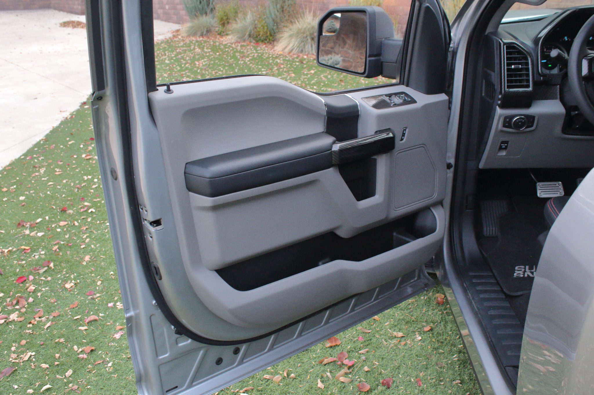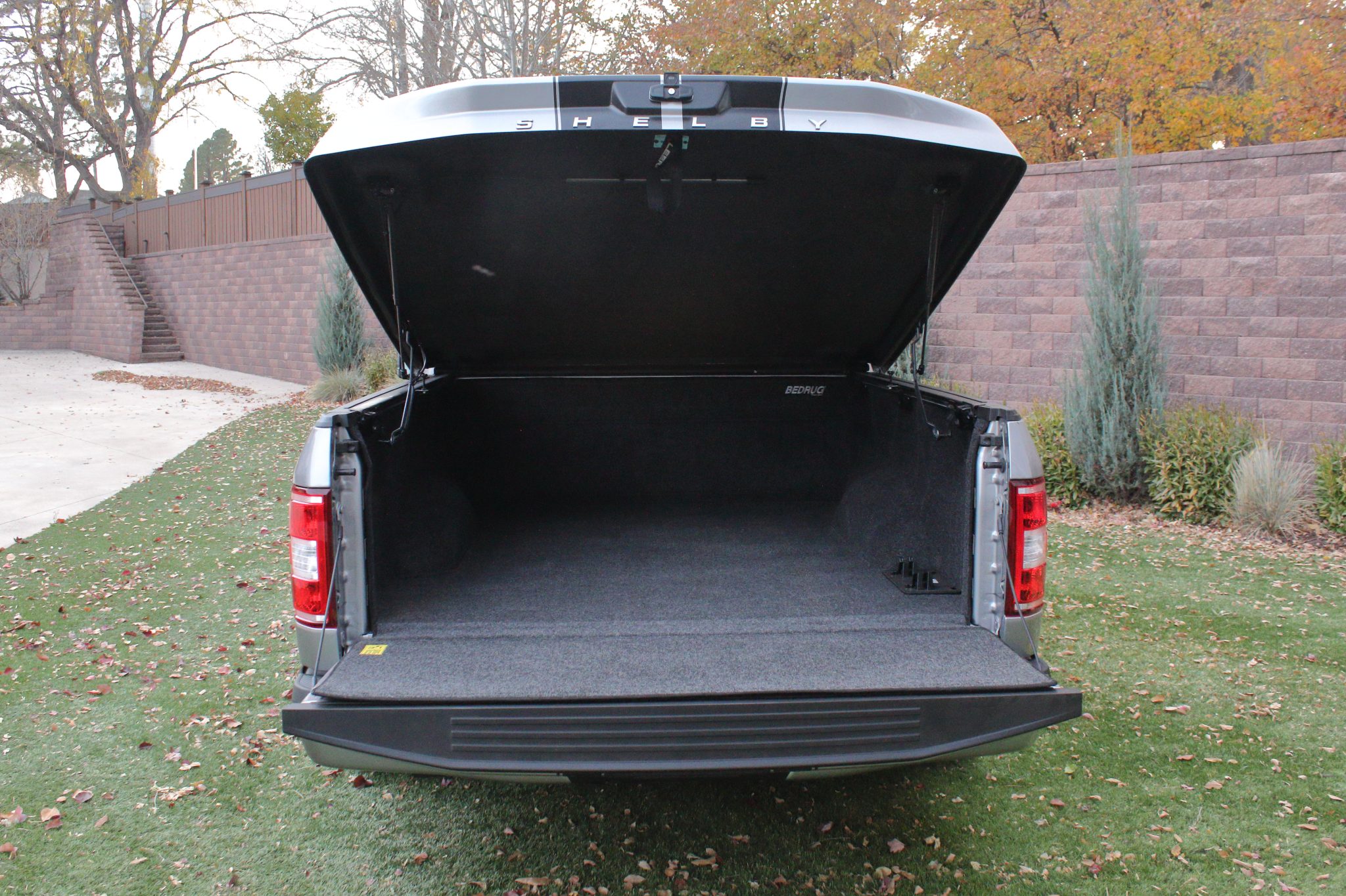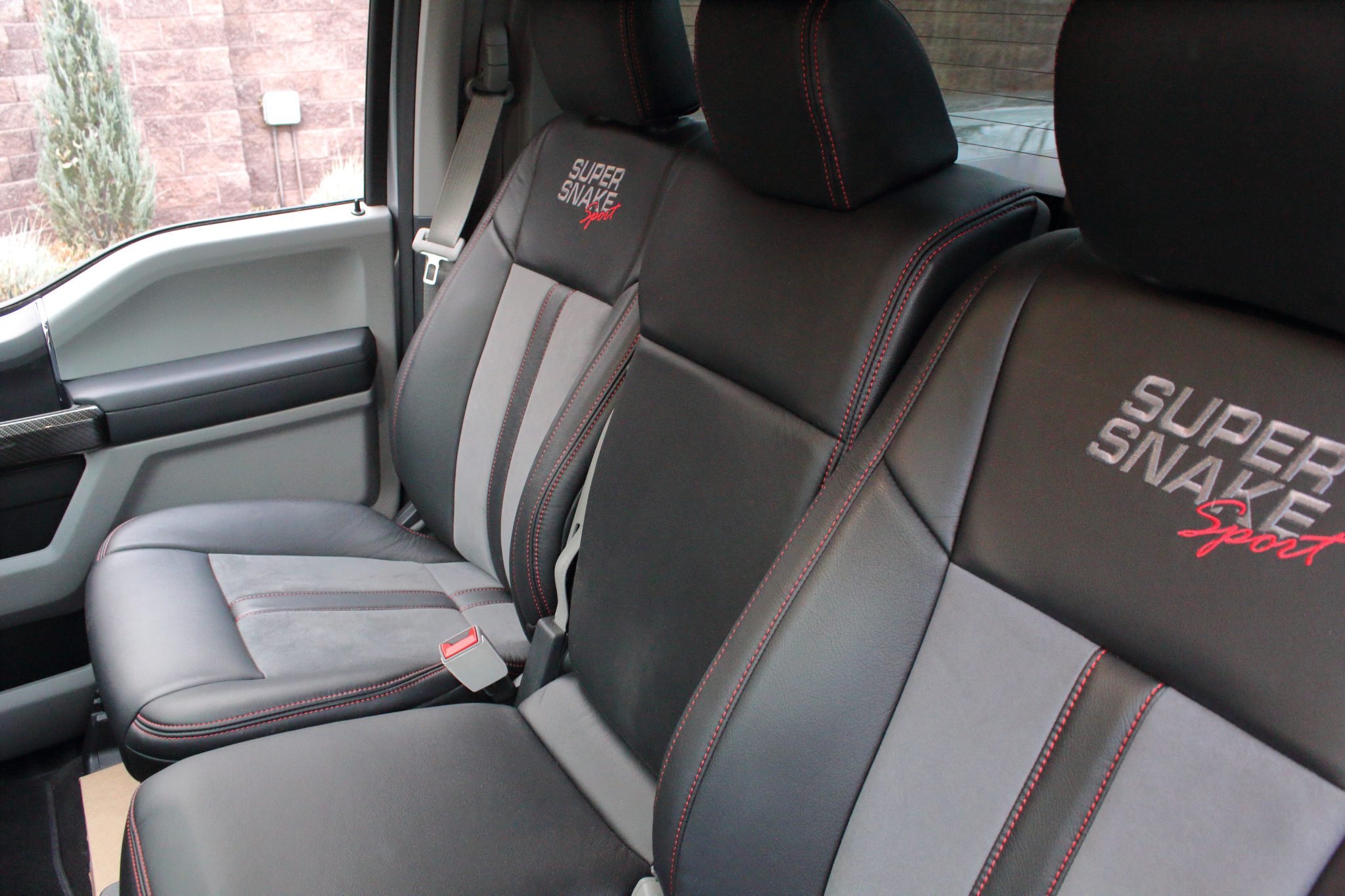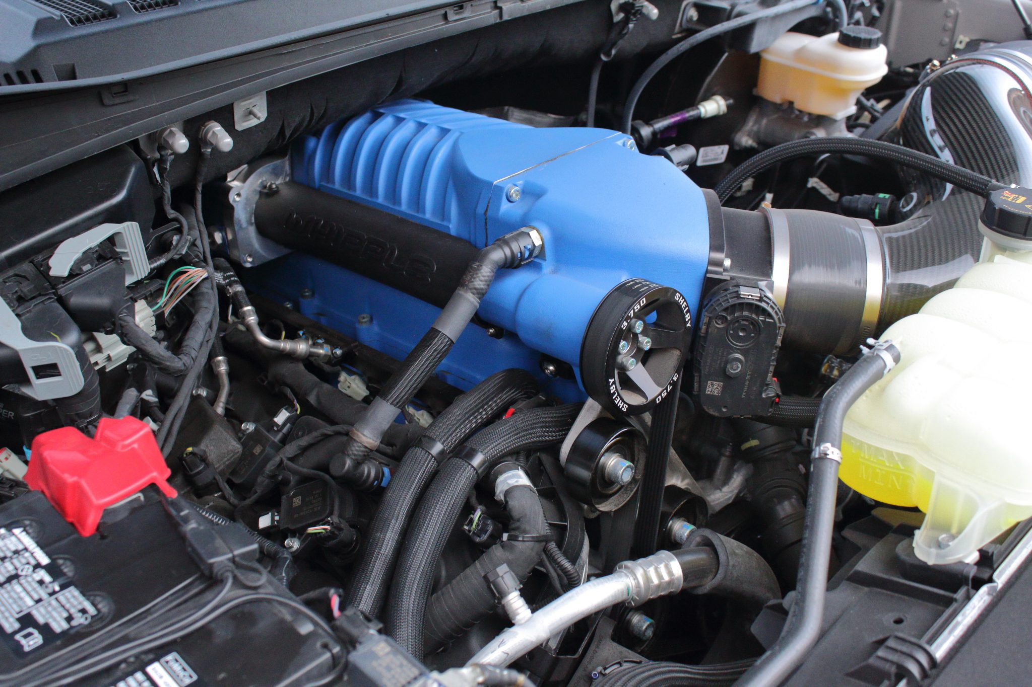 This 2020 Ford F-150 Shelby Super Snake Sport is a regular-cab pickup that is powered by a supercharged 5.0-liter Coyote V8 linked with a 10-speed automatic transmission, a dual-range transfer case, and an electronic locking rear differential. The truck is finished in Iconic Silver Metallic with black stripes with Shelby badging, a revised front fascia, and a tonneau bed cover with an integrated spoiler. Black-finished 22″ wheels are complemented by a Shelby-tuned suspension and a performance braking system, and a side-exit Shelby-tuned Borla exhaust system is also fitted. Black leather upholstery with red stitching covers the seats, and the interior features microfiber inserts for the outboard seats as well as carbon-fiber-look trim, a power-adjustable driver’s seat, touchscreen infotainment, voice-activated navigation, and remote start.