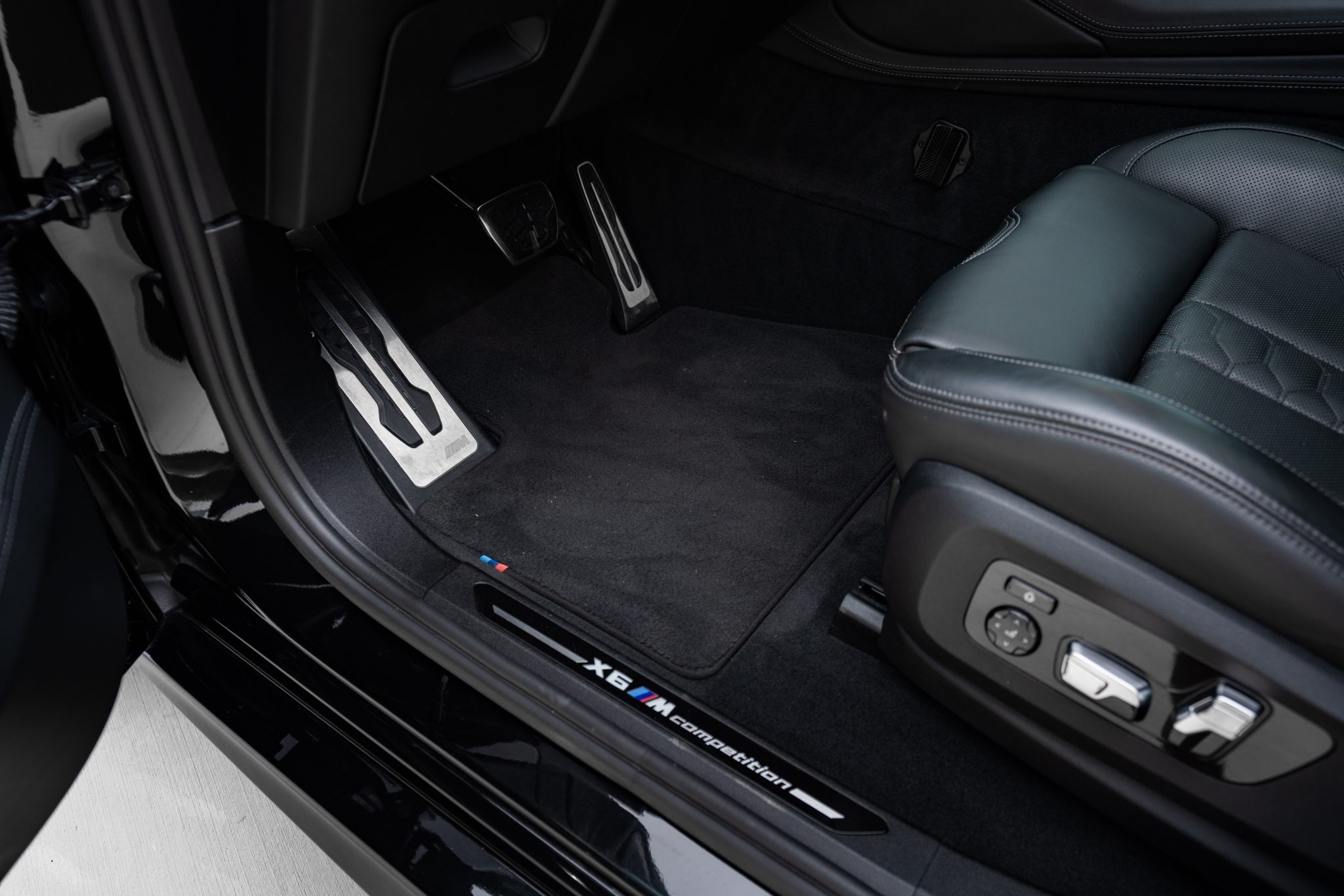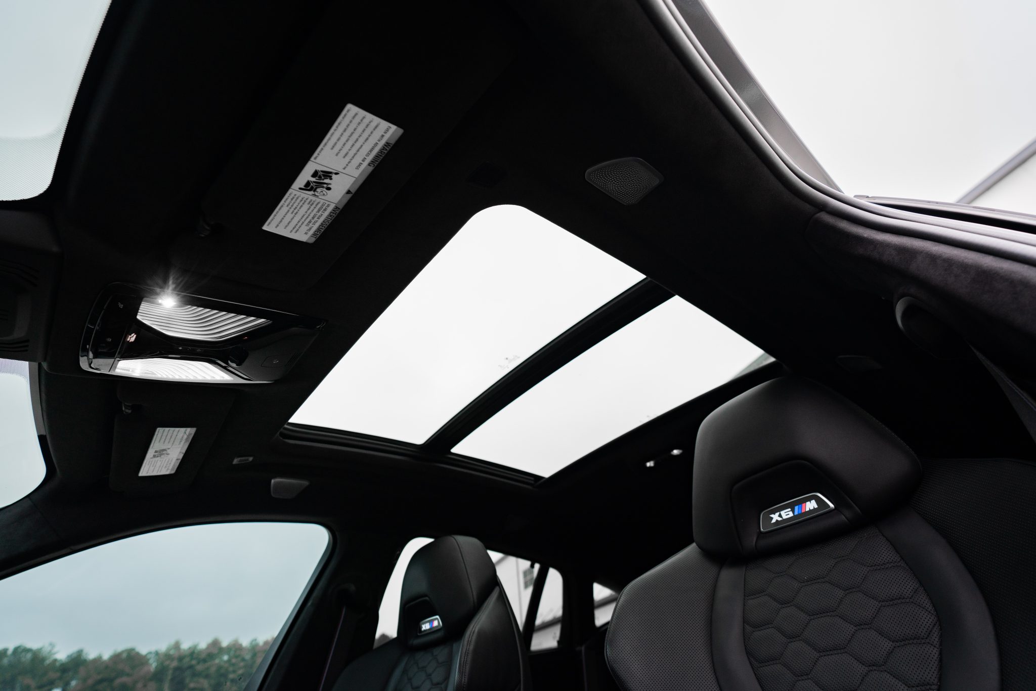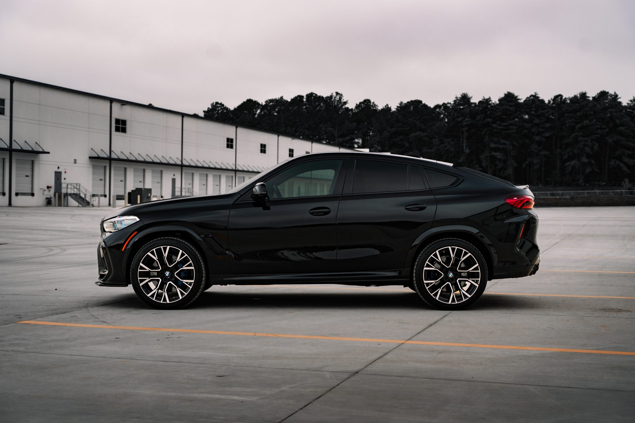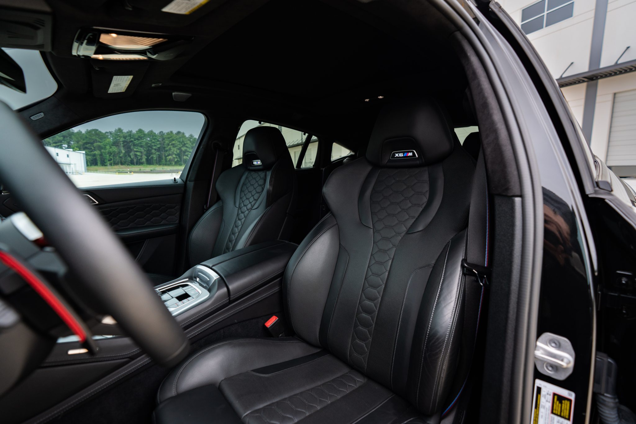 This 2021 BMW X6 M is finished in Black Sapphire Metallic over black full Merino leather, and it was optioned with the M Competition, Executive, and Driver Assistance Pro packages. Power is provided by a twin-turbocharged 4.4-liter V8 driving all four wheels via an eight-speed automatic transmission, and equipment includes a panoramic sunroof, adaptive LED headlights, an aftermarket front spoiler, a surround-view camera system, and 22″ Style 809M wheels. The cabin is appointed with a later-model steering wheel, heated massaging front seats as well as heated rear seats, a head-up display, configurable digital instrumentation, and a Bowers & Wilkins sound system.
