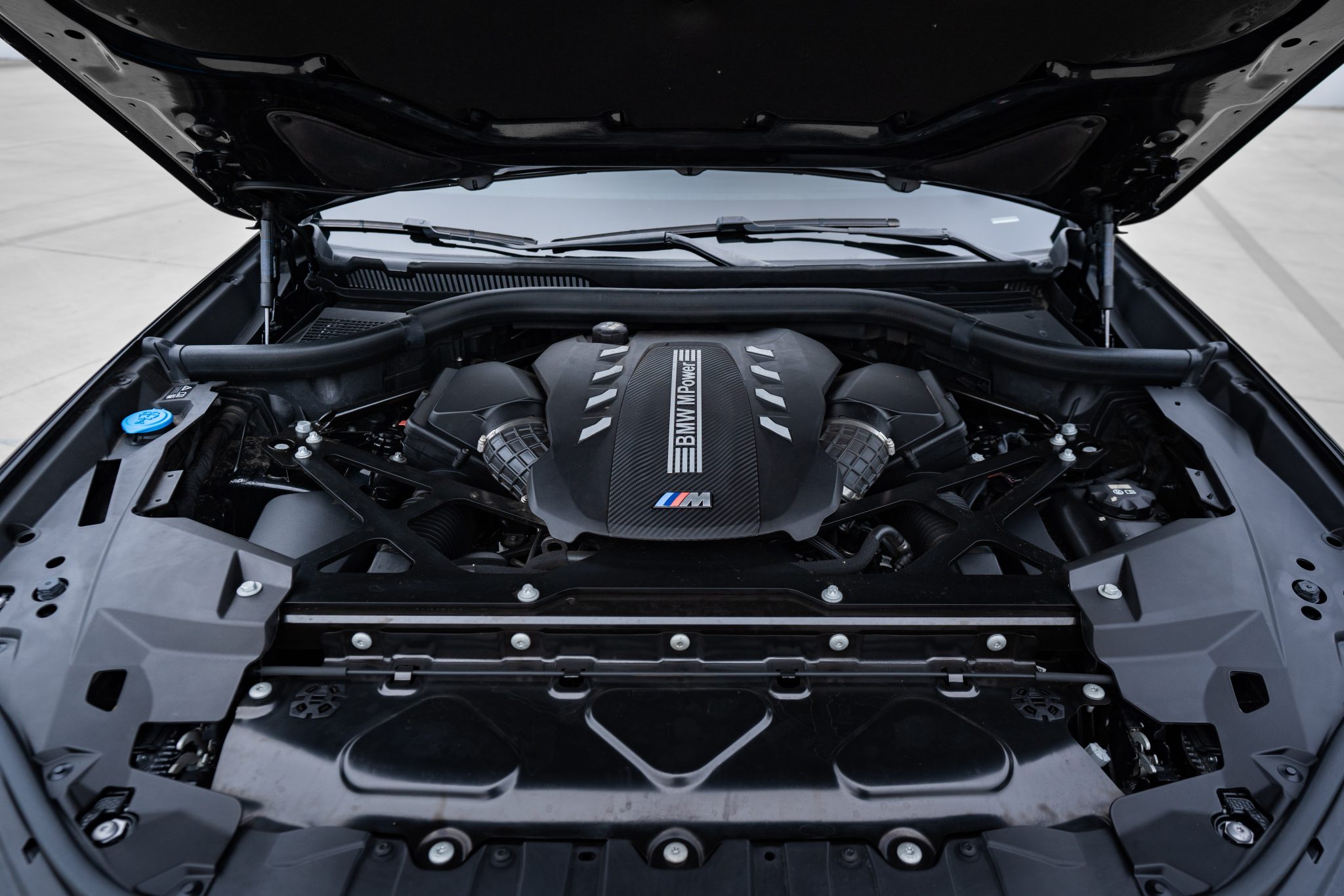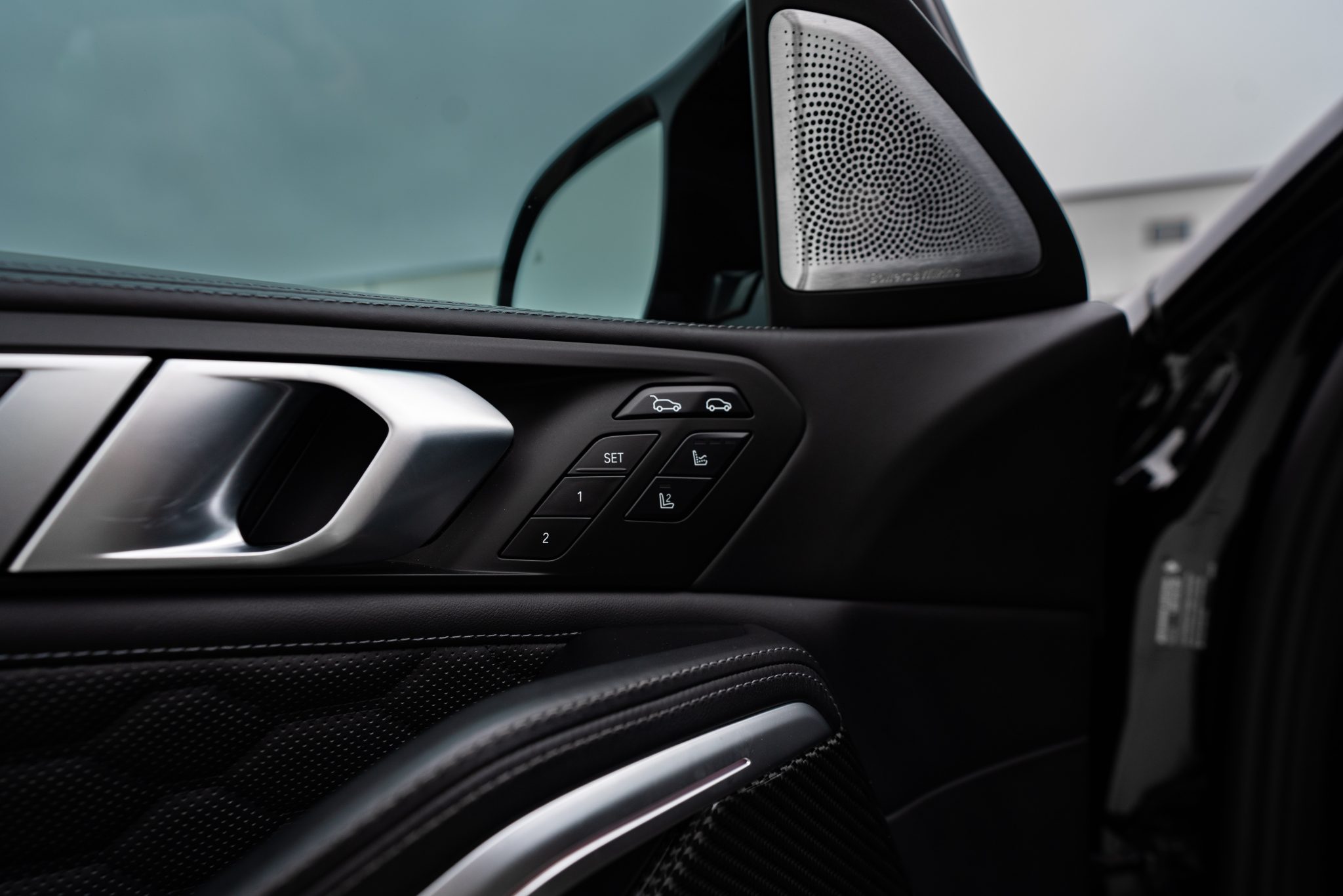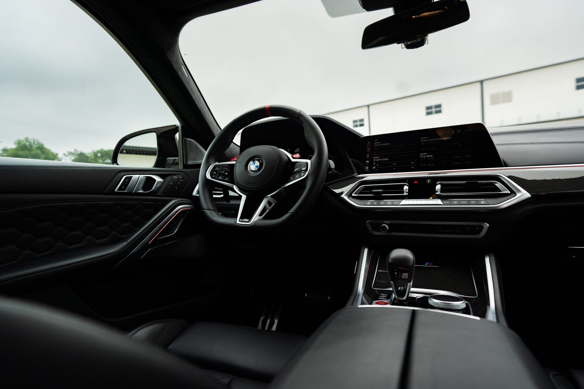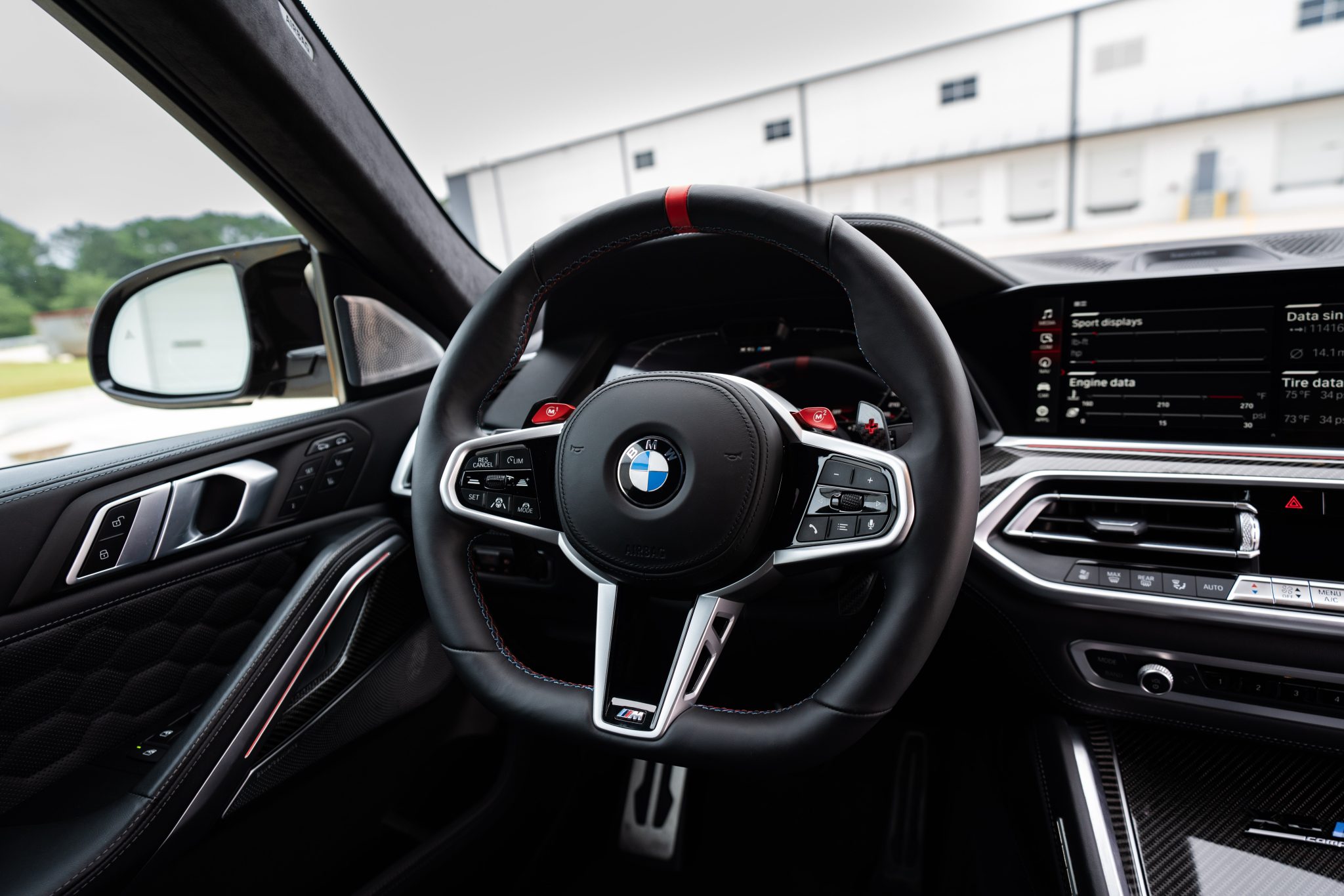 This 2021 BMW X6 M is finished in Black Sapphire Metallic over black full Merino leather, and it was optioned with the M Competition, Executive, and Driver Assistance Pro packages. Power is provided by a twin-turbocharged 4.4-liter V8 driving all four wheels via an eight-speed automatic transmission, and equipment includes a panoramic sunroof, adaptive LED headlights, an aftermarket front spoiler, a surround-view camera system, and 22″ Style 809M wheels. The cabin is appointed with a later-model steering wheel, heated massaging front seats as well as heated rear seats, a head-up display, configurable digital instrumentation, and a Bowers & Wilkins sound system.