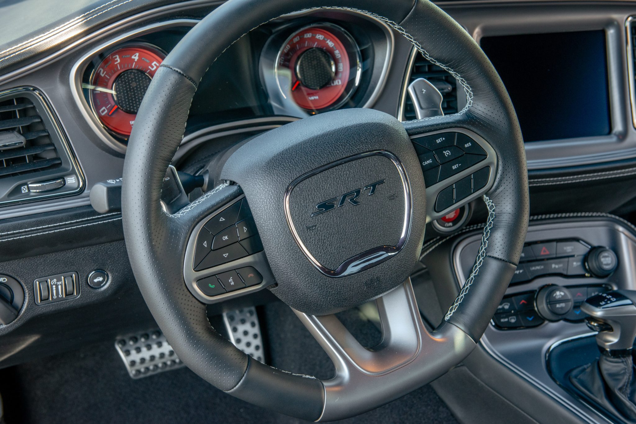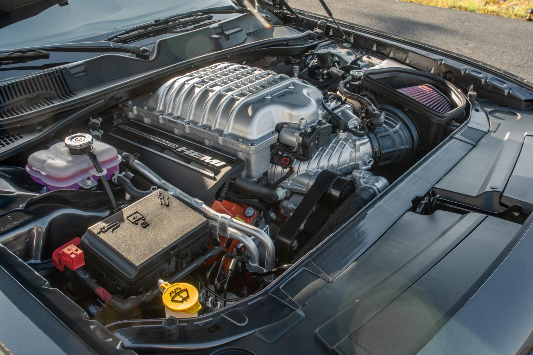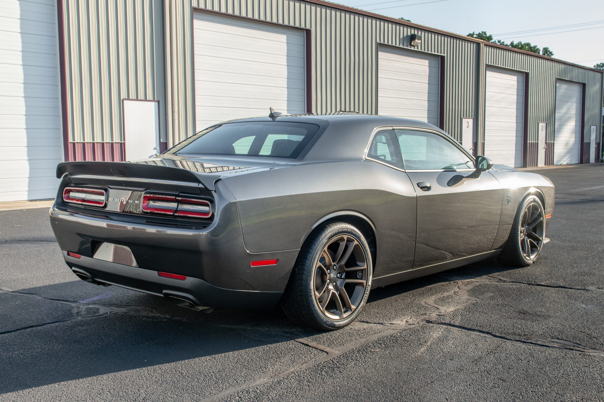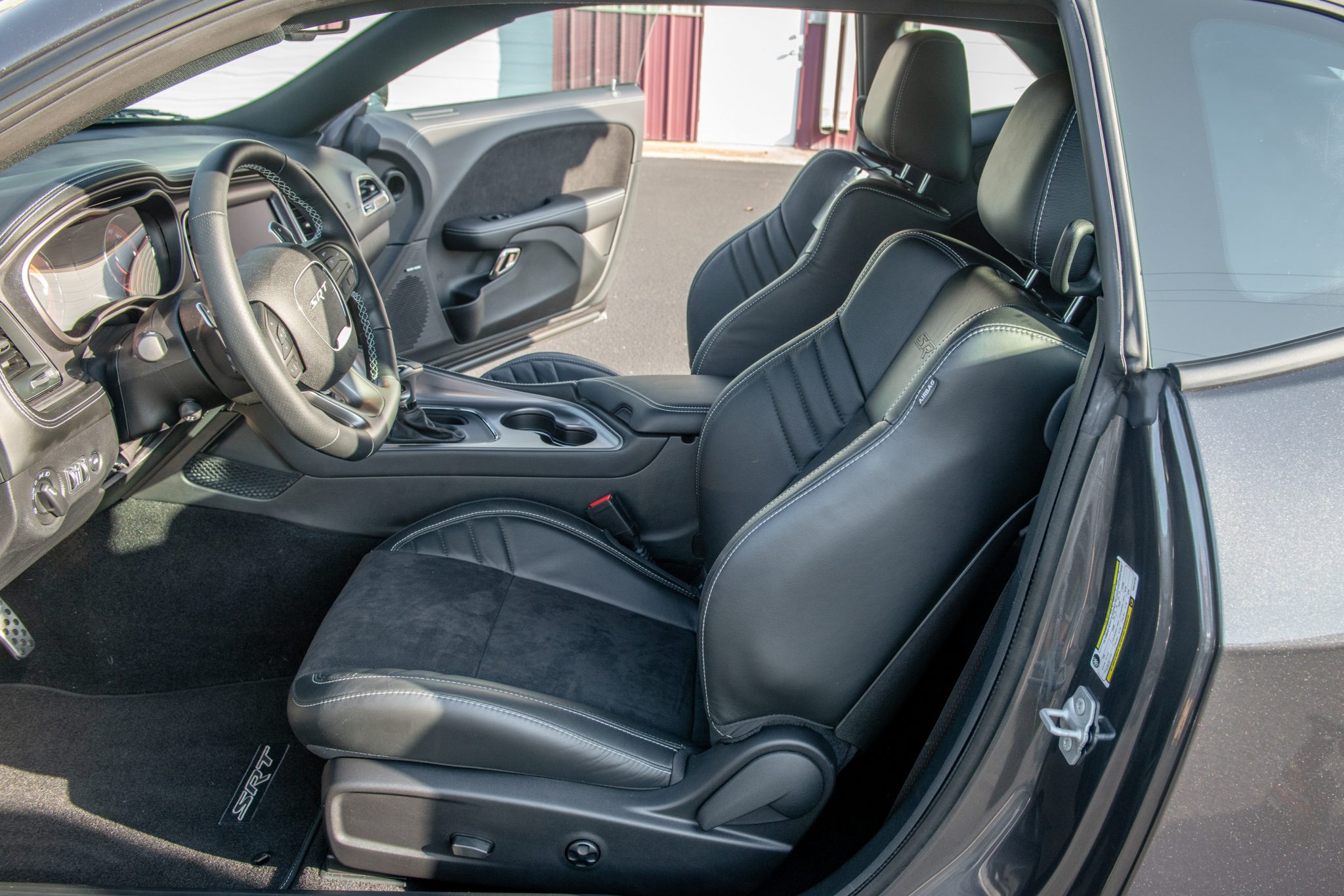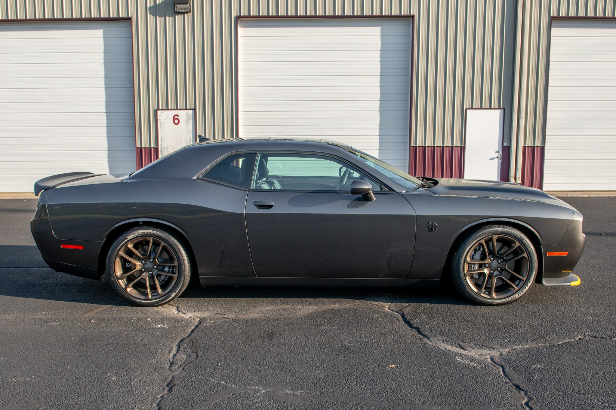 This 2023 Dodge Challenger SRT Hellcat Jailbreak is a Last Call edition example that has 47 miles and is powered by a supercharged 6.2-liter V8 linked to an eight-speed automatic transmission and a limited-slip differential. Finished in Granite over black Laguna leather and Alcantara, the car is equipped with Brembo brake calipers, a Competition suspension, 20″ Brass Monkey forged wheels, a power sunroof, HID Air-Catcher headlamps, heated and ventilated front seats, a Harman Kardon sound system, a Satin Black-painted hood, an SRT Performance spoiler, and a UConnect infotainment system with navigation.