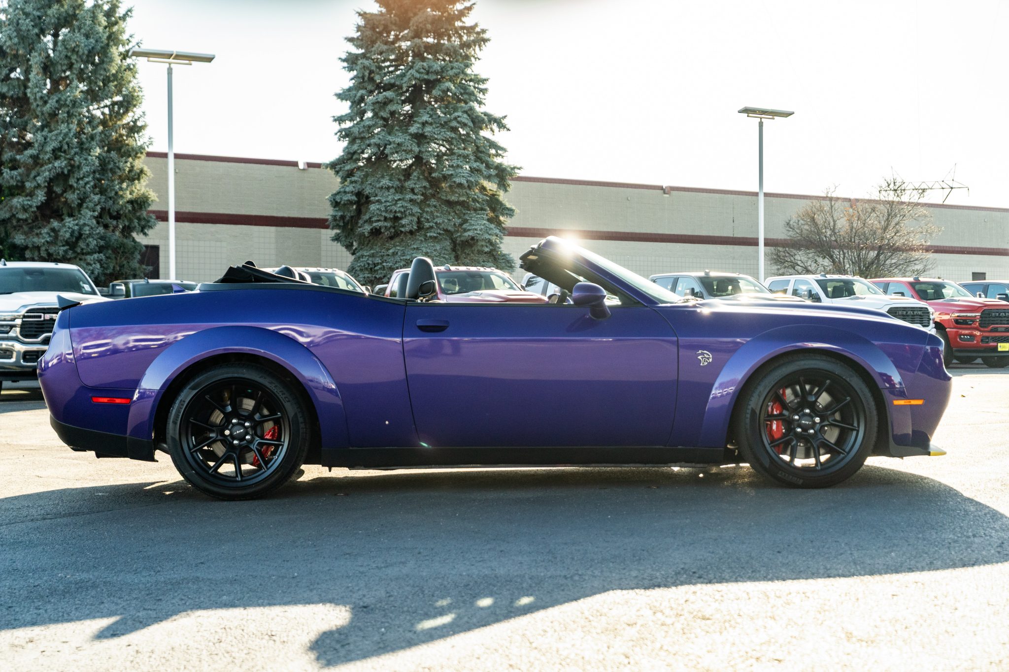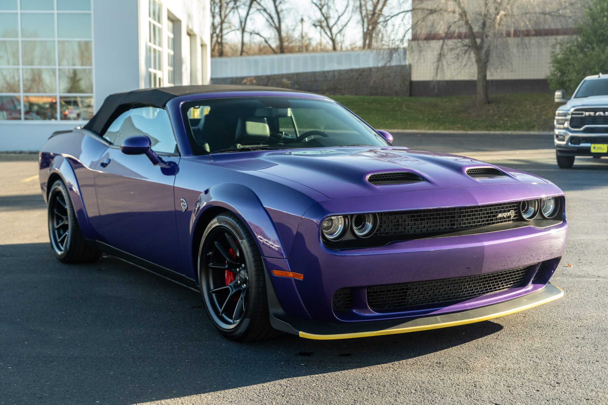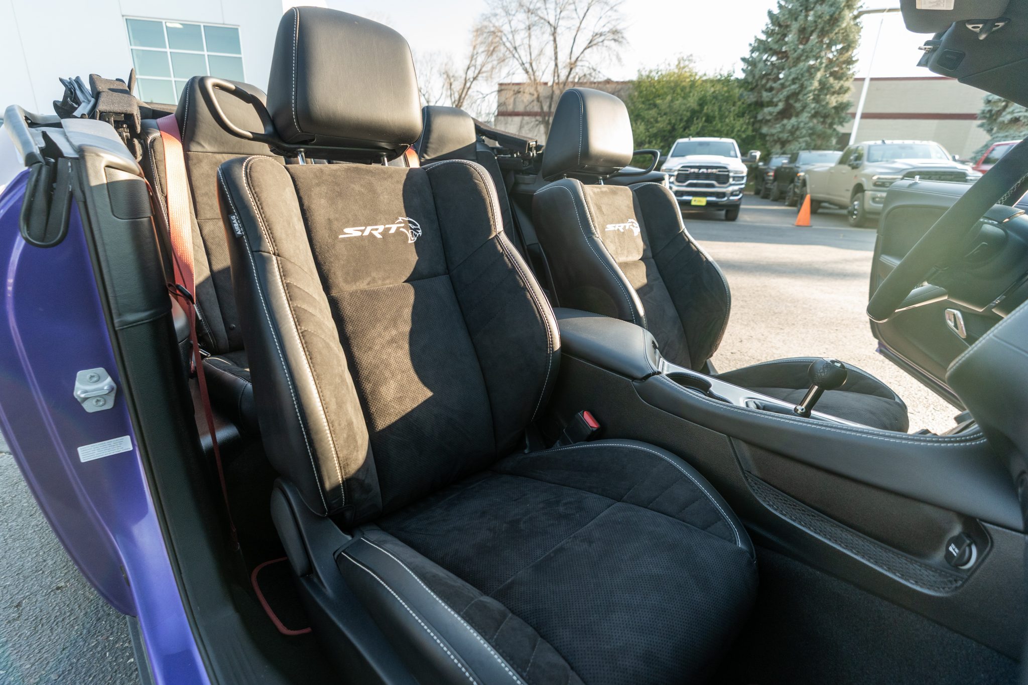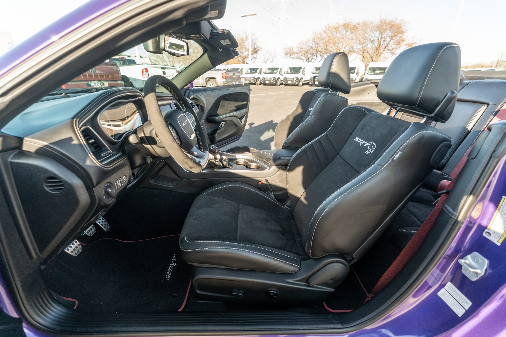 . It is finished in Plum Crazy over black Nappa leather and Alcantara, and power is provided by a supercharged 6.2-liter V8 linked to a six-speed manual transmission and a limited-slip differential. Features include HID Air-Catcher headlamps, widebody fenders, Brembo brake calipers, a competition suspension, the Driver Convenience Group, 20″ Y-spoke lightweight forged aluminum wheels, heated and ventilated front seats, and a UConnect infotainment system with navigation.e