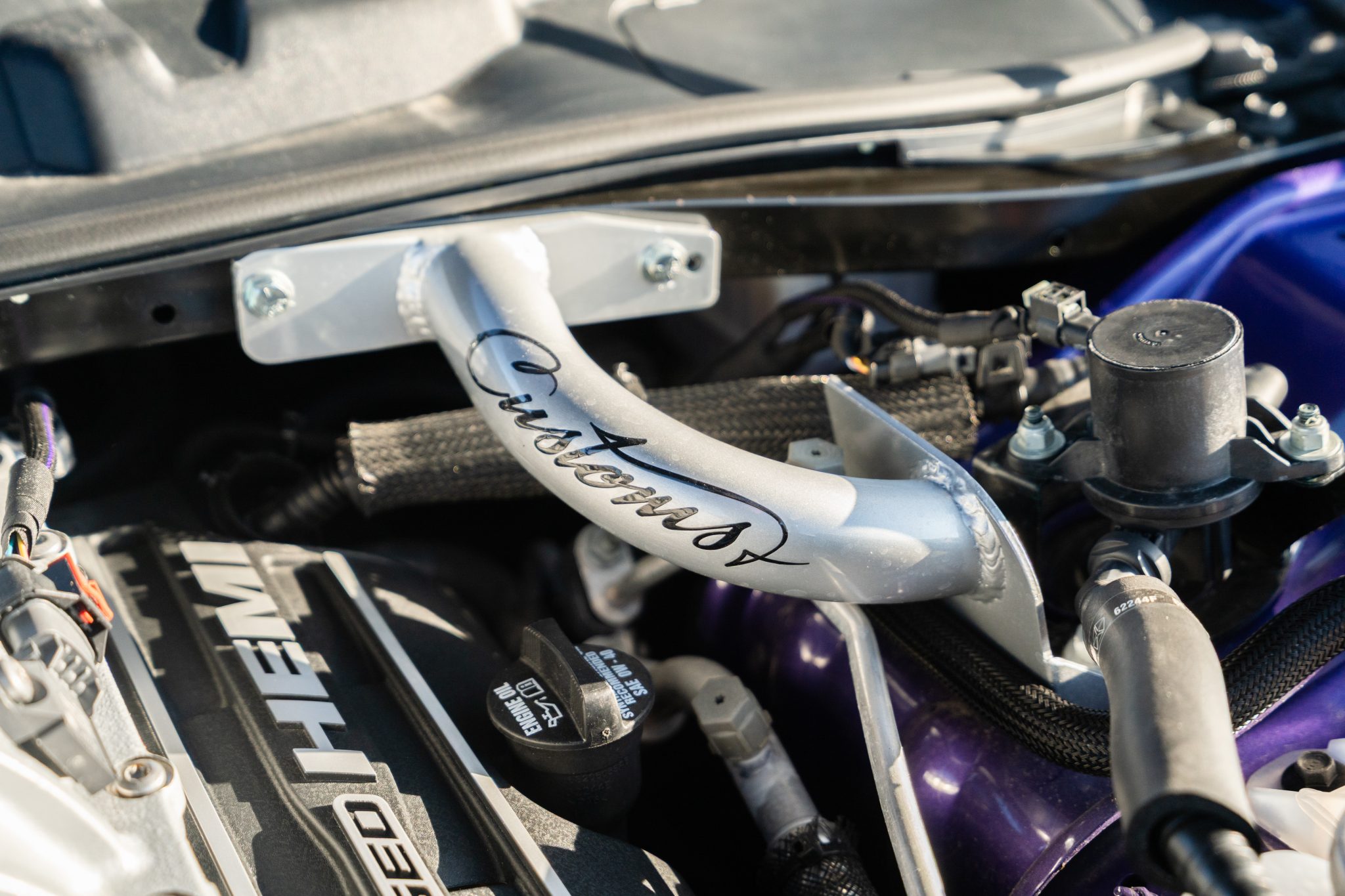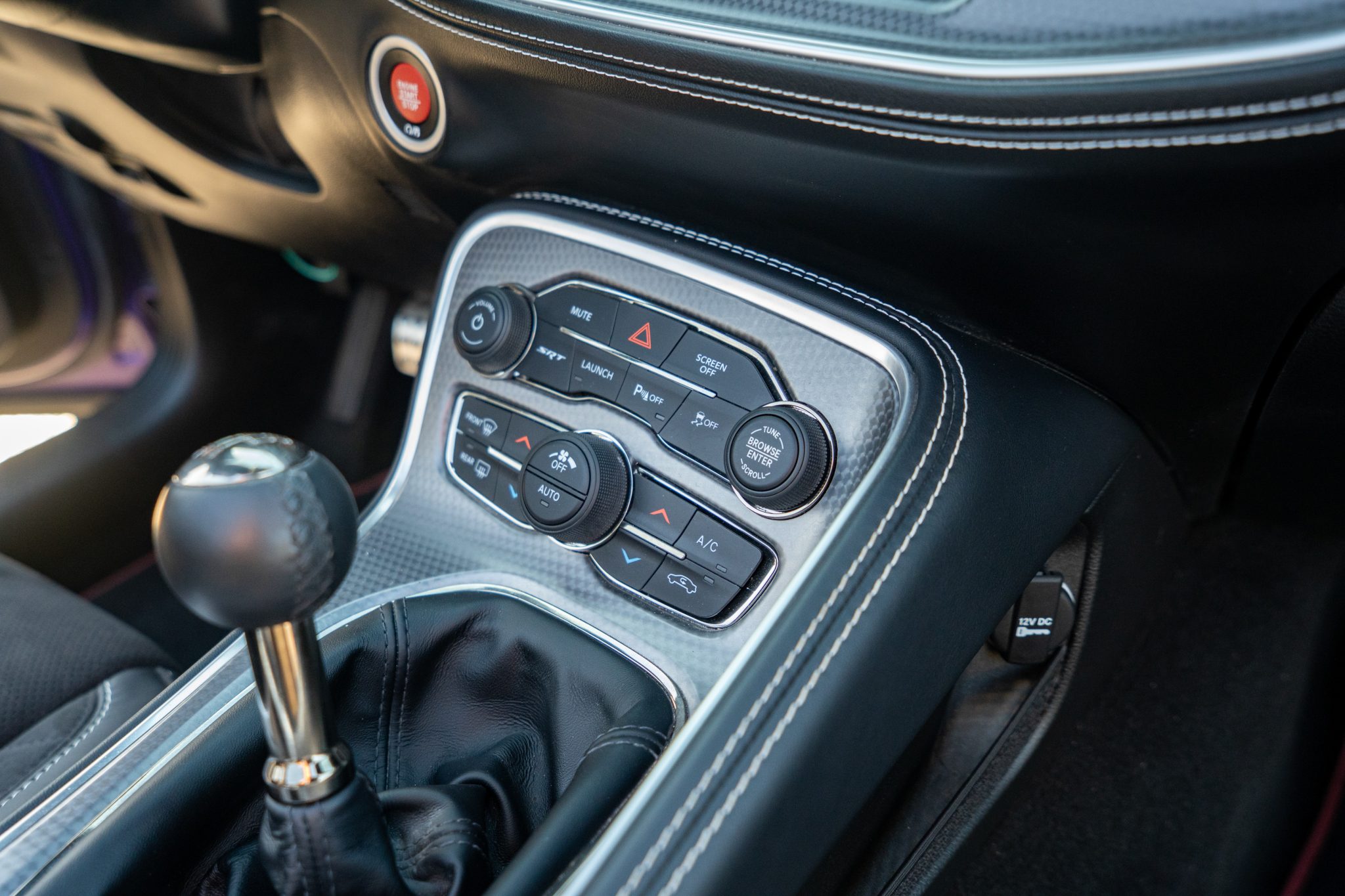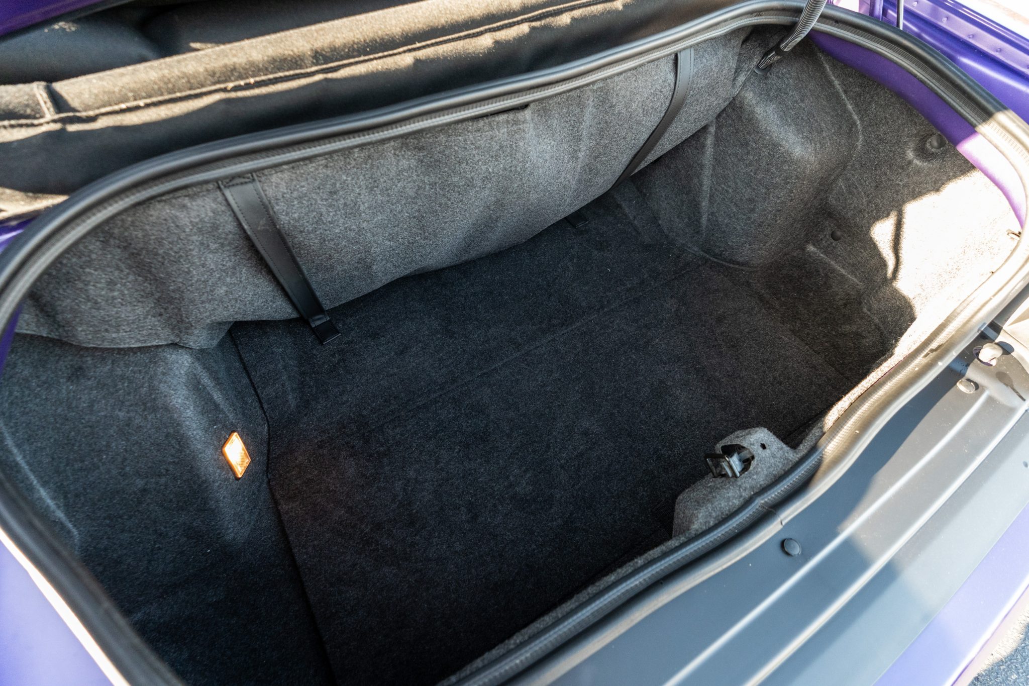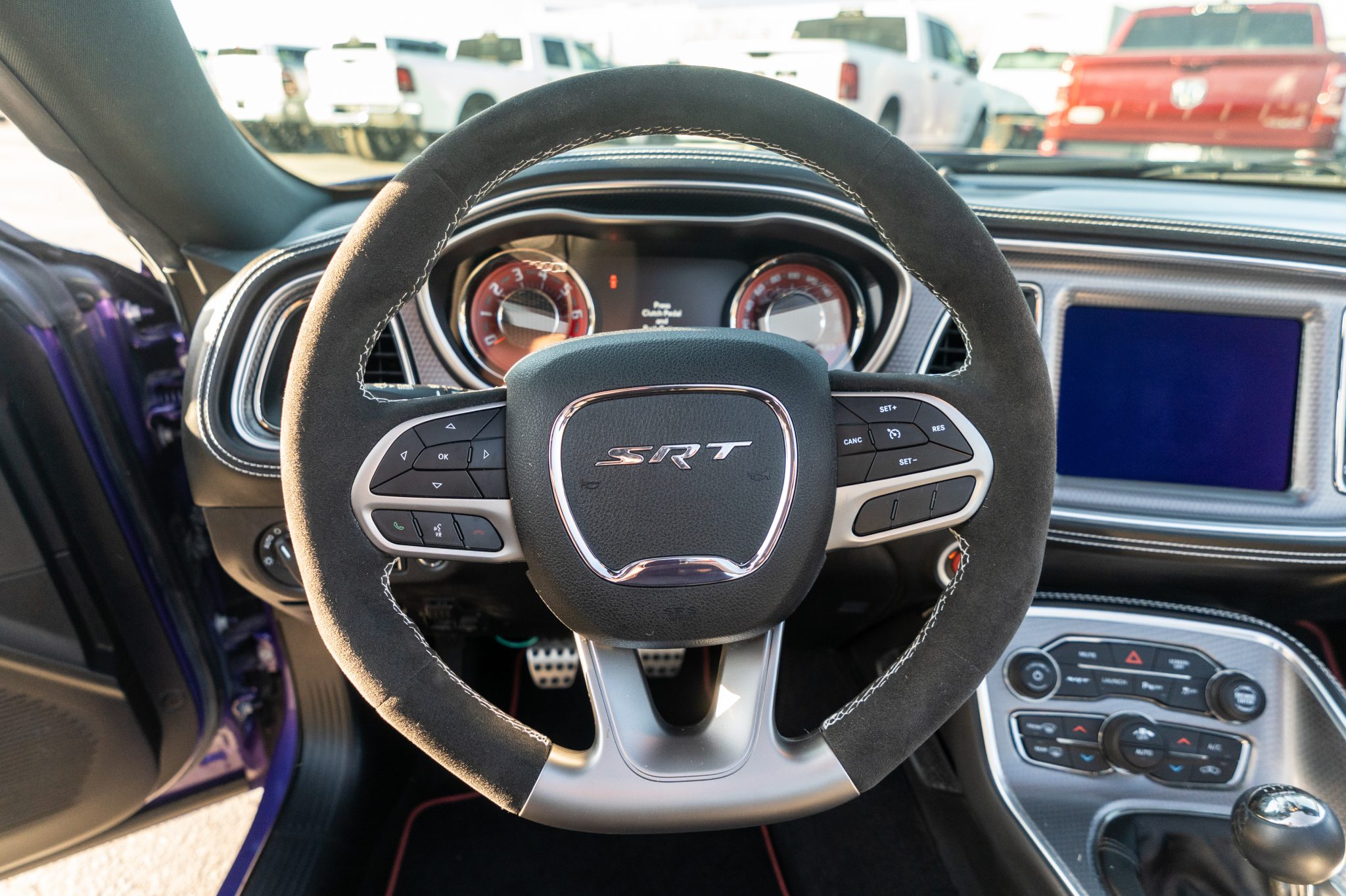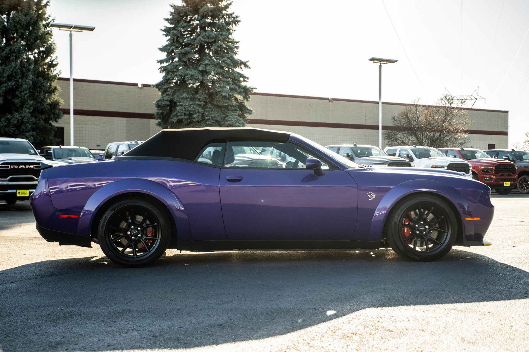 . It is finished in Plum Crazy over black Nappa leather and Alcantara, and power is provided by a supercharged 6.2-liter V8 linked to a six-speed manual transmission and a limited-slip differential. Features include HID Air-Catcher headlamps, widebody fenders, Brembo brake calipers, a competition suspension, the Driver Convenience Group, 20″ Y-spoke lightweight forged aluminum wheels, heated and ventilated front seats, and a UConnect infotainment system with navigation.e