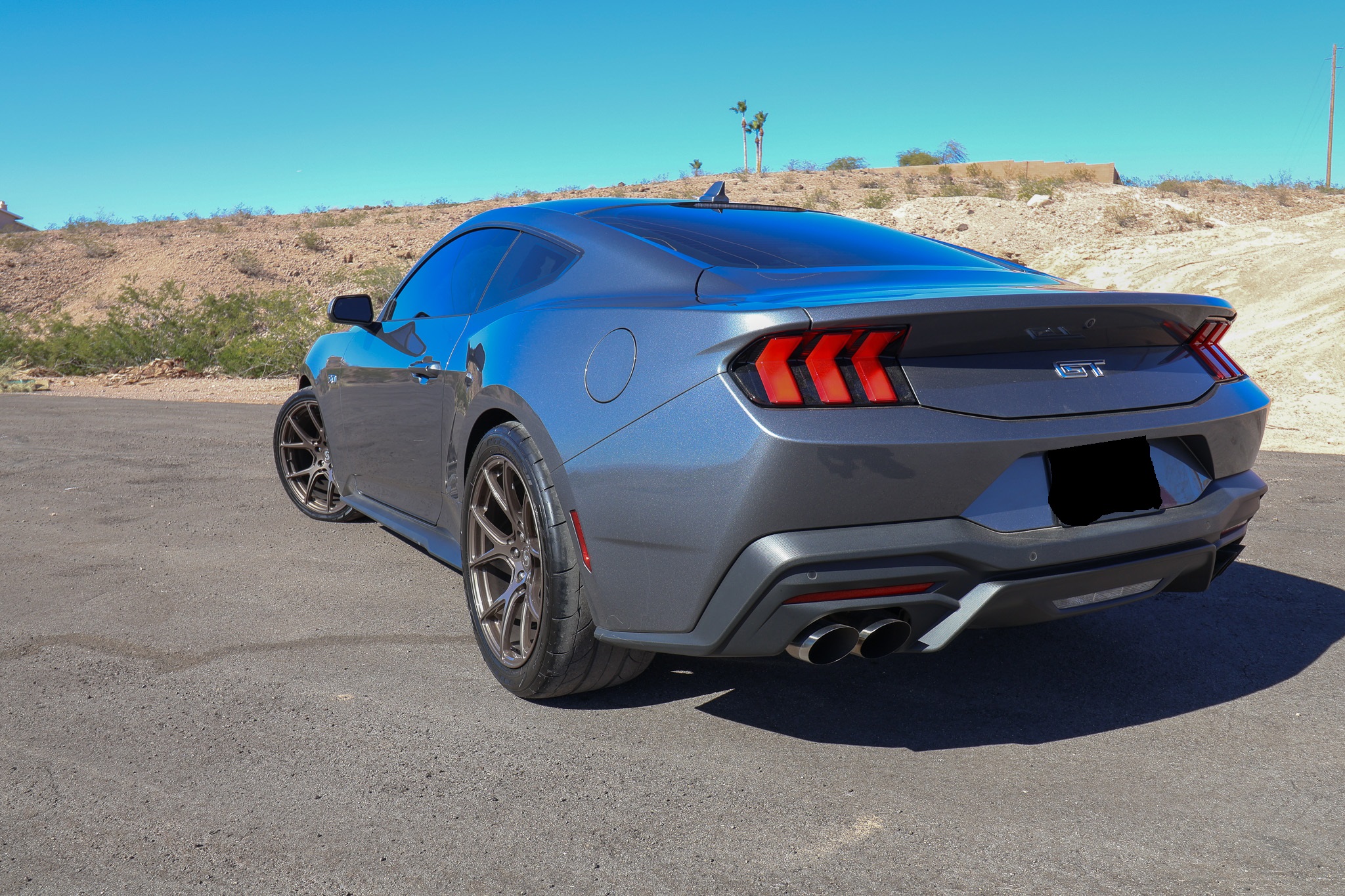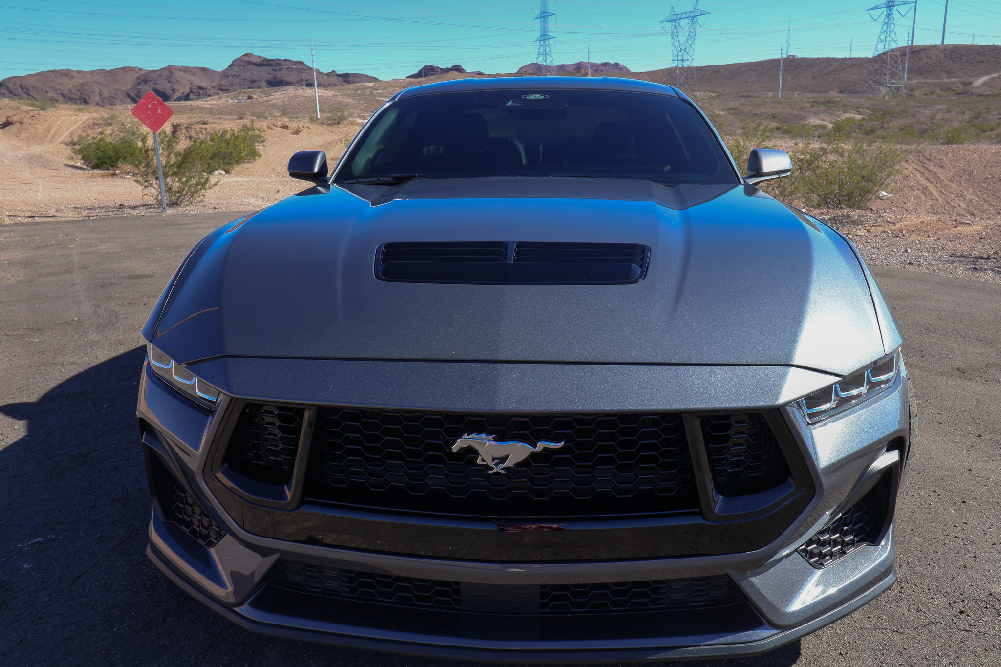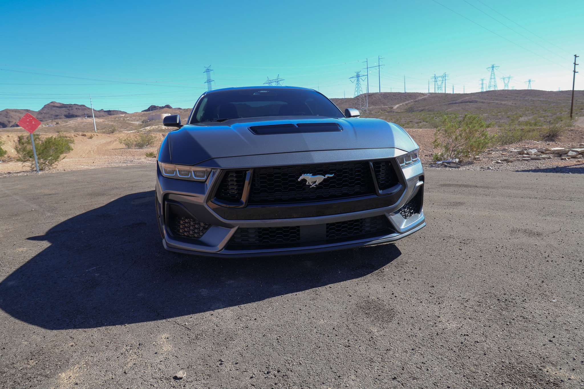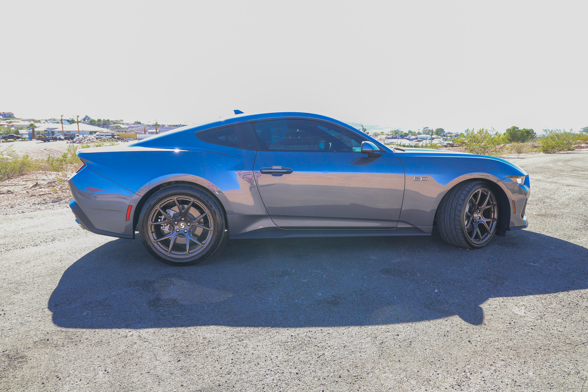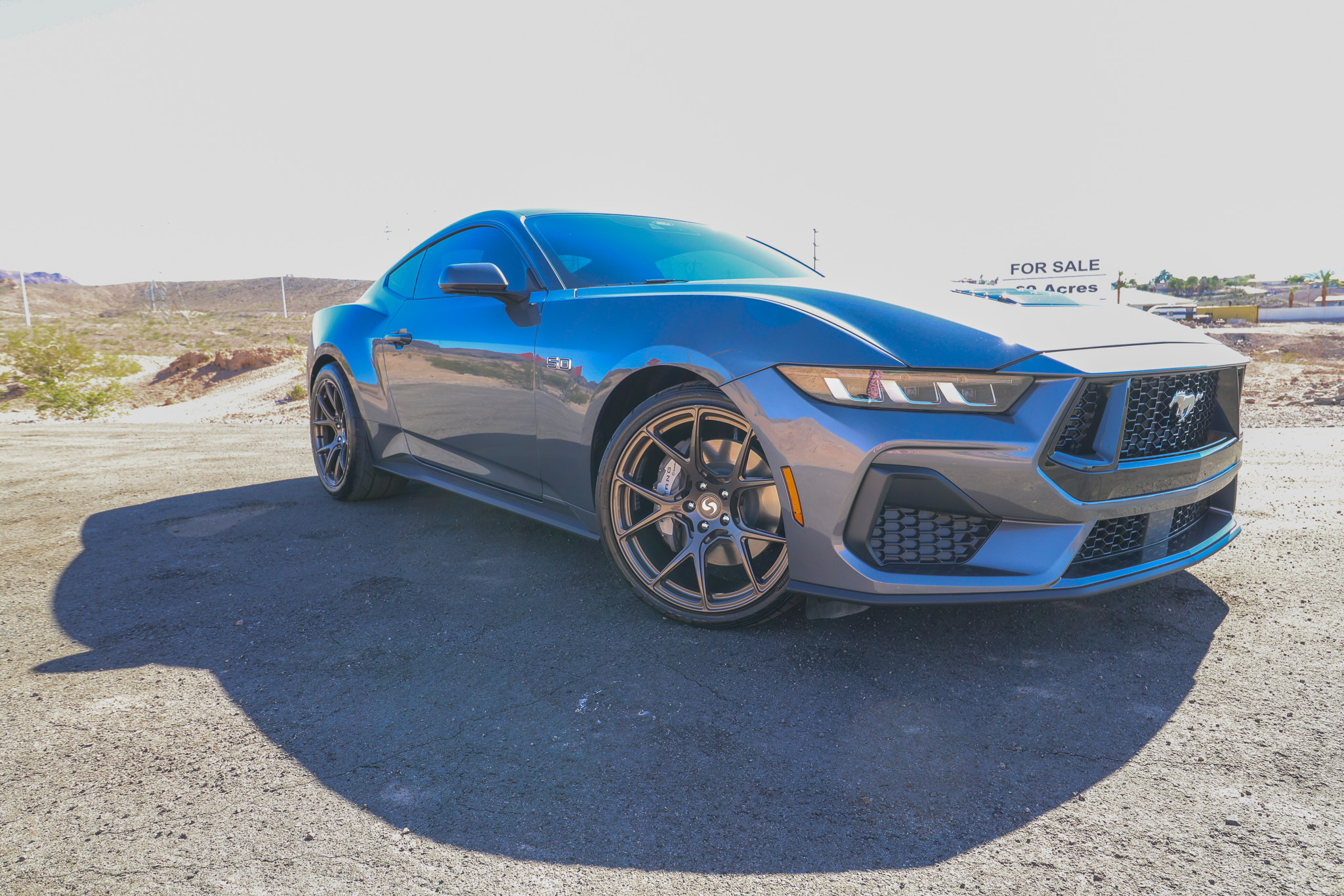 This 2024 Ford Mustang GT Premium fastback  with 5.0-liter Coyote V8 was subsequently fitted with a Ford Performance Whipple Supercharger kit and Steeda Mustang IRS subframe  It is finished in Carbonized Gray Metallic over Black Onyx ActiveX and is equipped with a six-speed manual transmission, a limited-slip differential, LED headlights, an active exhaust system, Signature SV107 20″ wheels, a heated steering wheel, heated and ventilated front seats, tinted windows, a navigation system, and dual-zone automatic climate control.