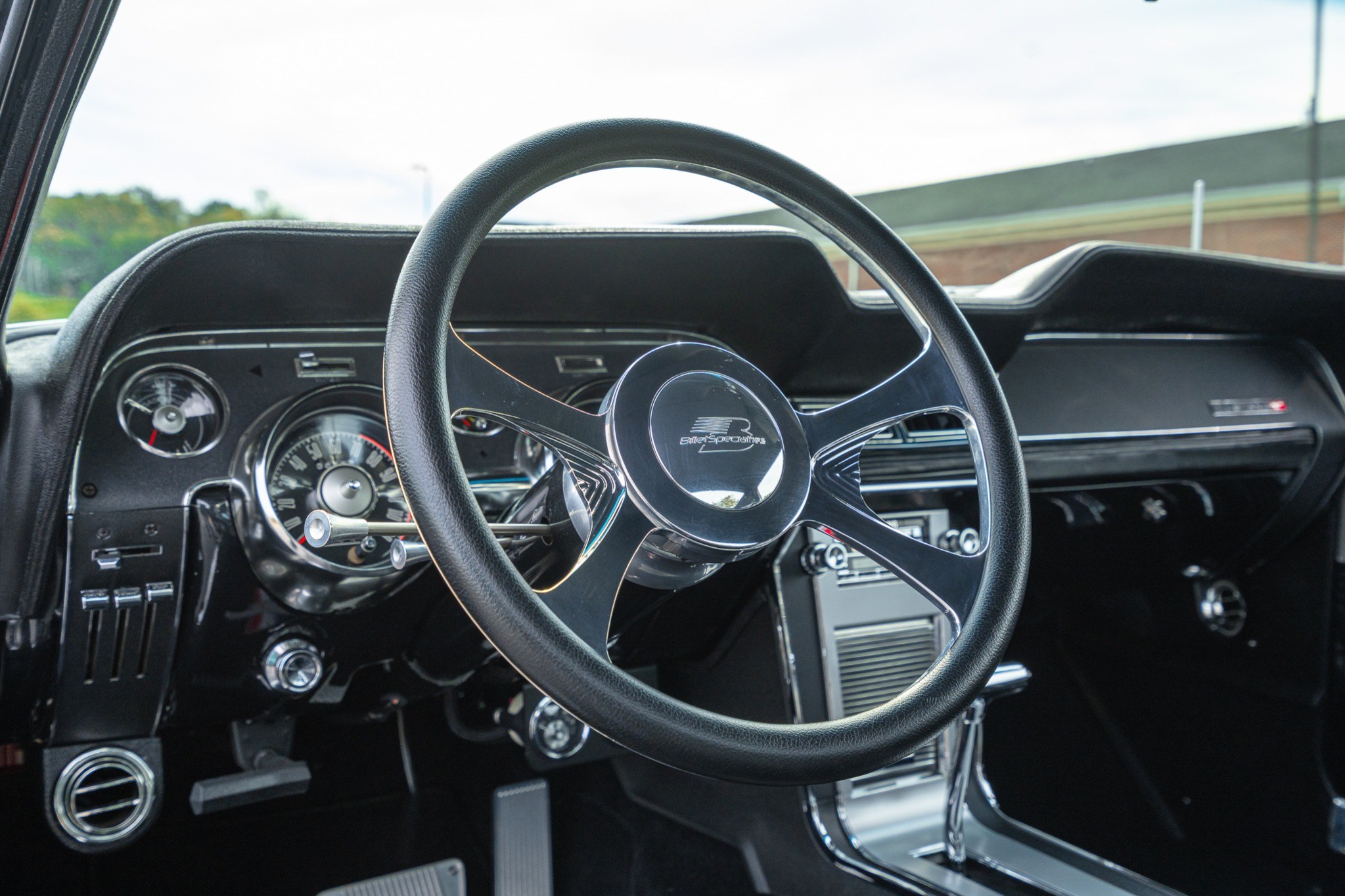 This 1967 Ford Mustang fastback was built in June 1967 a red interior, and an S-Code 390ci V8 linked to a C-6 automatic and a 3.25:1 limited-slip differential. The seller acquired the car in 1986 from a friend, and in 2010 it was rebuilt and modified. The FE block was bored and fitted with a SCAT 445 stroker kit, Diamond pistons, a Demos Cams hydraulic roller camshaft, Edelbrock aluminum heads and an RPM Performer intake manifold, and a Quick Fuel HR-Series 850CFM carburetor. The C-6 was overhauled with internals from CK Performance Engineering and a 3,200-RPM stall converter, while the rear end is a Currie 9″ with a Detroit Locker and 31-spline axles. The car rides on custom polished American Racing 17″ Shelby Cobra wheels with Wilwood brakes, Varishock dampers, and Borgeson power steering, and metal work was performed before the exterior was repainted a one-off mix using PPG products. Inside, Vintage Air, TMI Products bucket seats, a RetroSound Classics radio, a custom sound system, billet pedals, and Lloyds mats were installed.